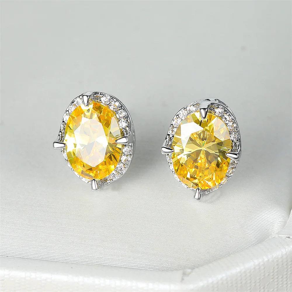 Small Oval Stone Mystic Yellow Crystal Stud Earrings For Women Vintage Silver Color Wedding Earring Birthstone Jewelry Girl Gift