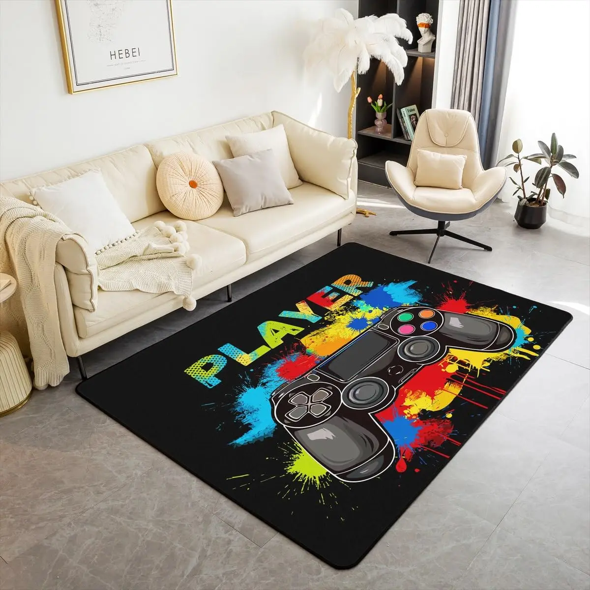 Skull Gamer Carpet Sugar Skull Games Area Rug for Living Room Bedroom Non Slip Juvenile Hand Skeleton Gamepad Gaming Floor Mat