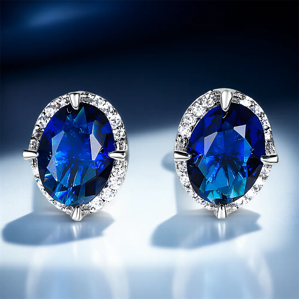Small Oval Stone Gorgeous Blue Crystal Stud Earrings For Women Vintage Silver Color Wedding Earring Birthstone Jewelry Girl Gift