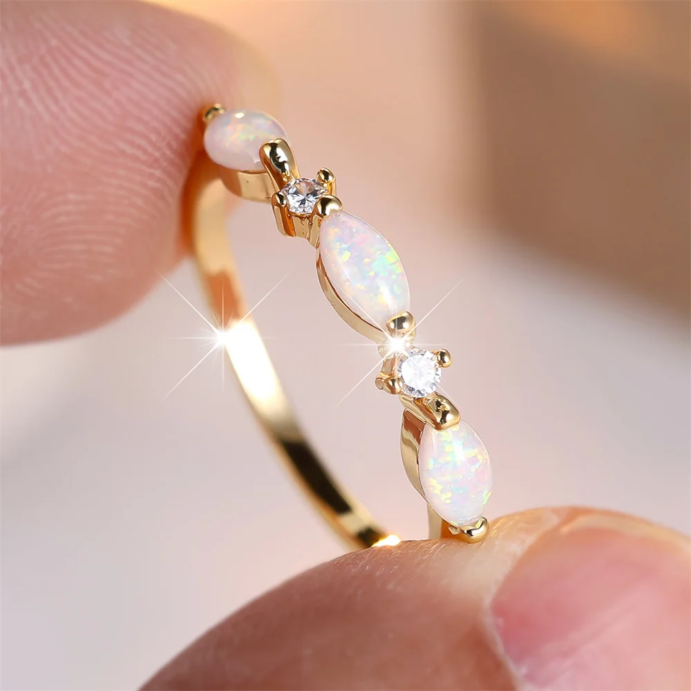 Small Marquise Stone Trendy White Opal Rings For Women Vintage Gold Color Engagement Bands Wedding Jewelry Bridal Versatile Gift