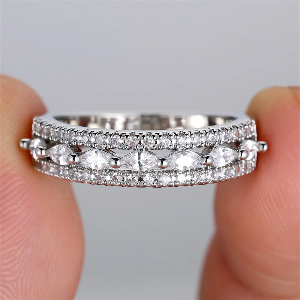 Small Marquise Stone Single Row White Zircon Rings For Women Classic Silver Color Engagement Bands Wedding Jewelry Bridal Gifts
