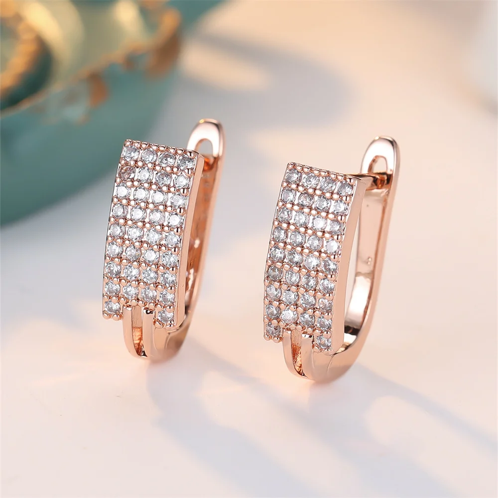 Small Rectangle White Zircon Full Stone Hoop Earrings For Women Vintage Rose Gold Color Ear Buckle Wedding Engagement Jewelry