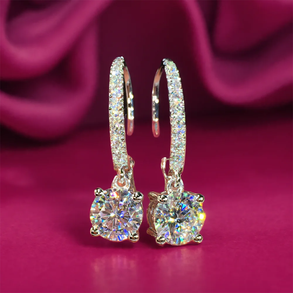 Small Round Stone Luxury Crystal Dangle Earrings For Women Vintage Silver Color White Zircon Drop Earring Trendy Wedding Jewelry