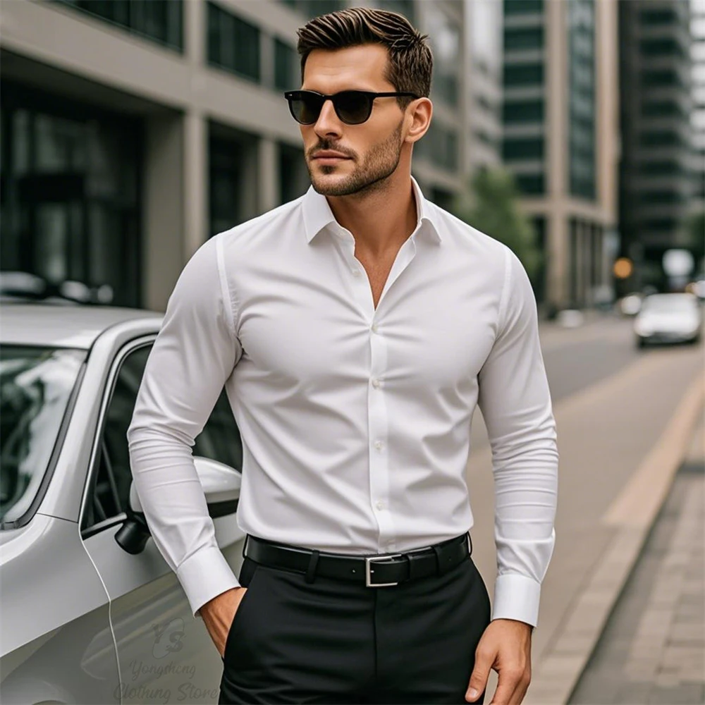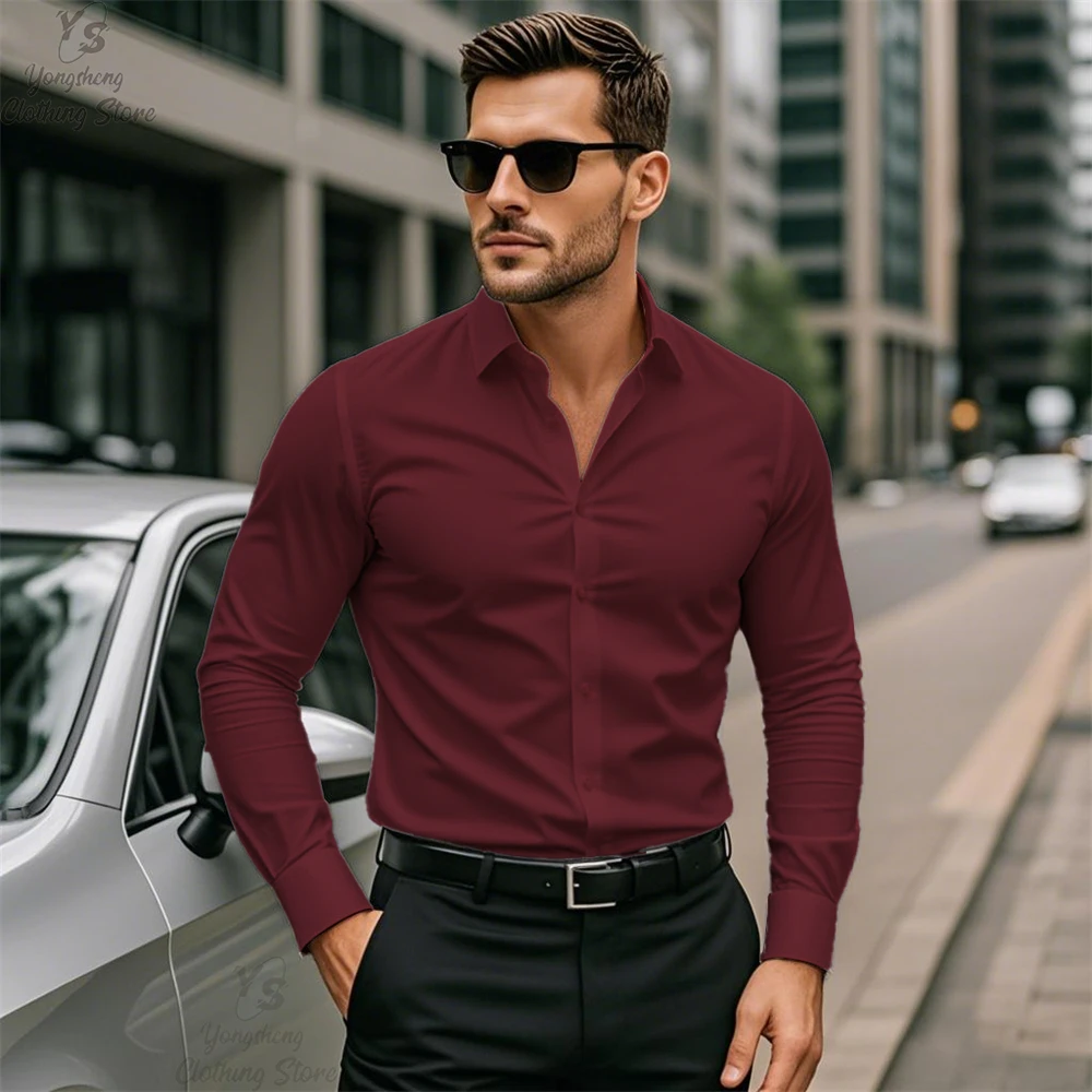 20 Colors Business Men’s Long Sleeve Shirts Solid Color Clothing Casual Fashion Comfortable Elegant Men’s Large Size Tops
