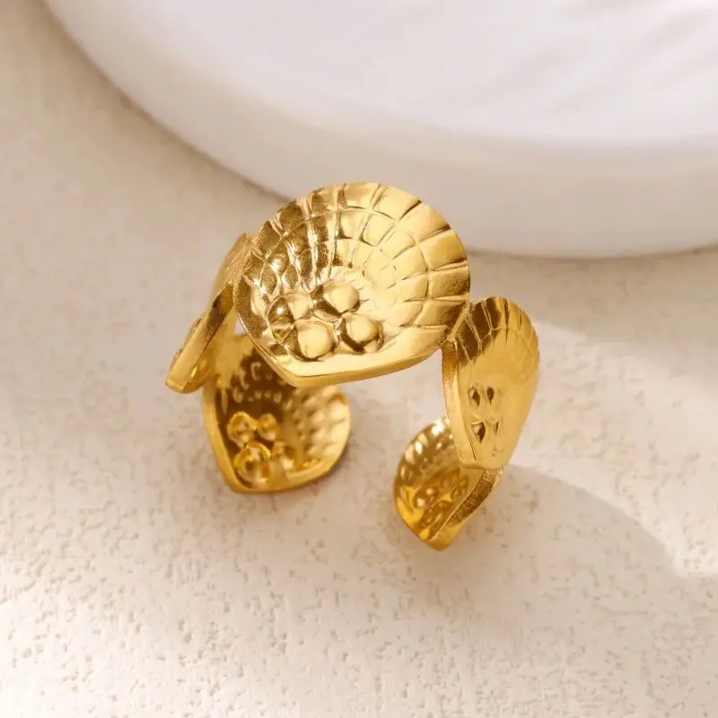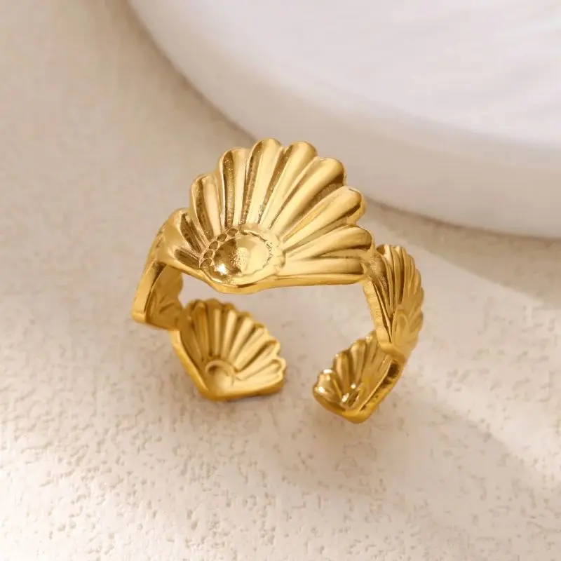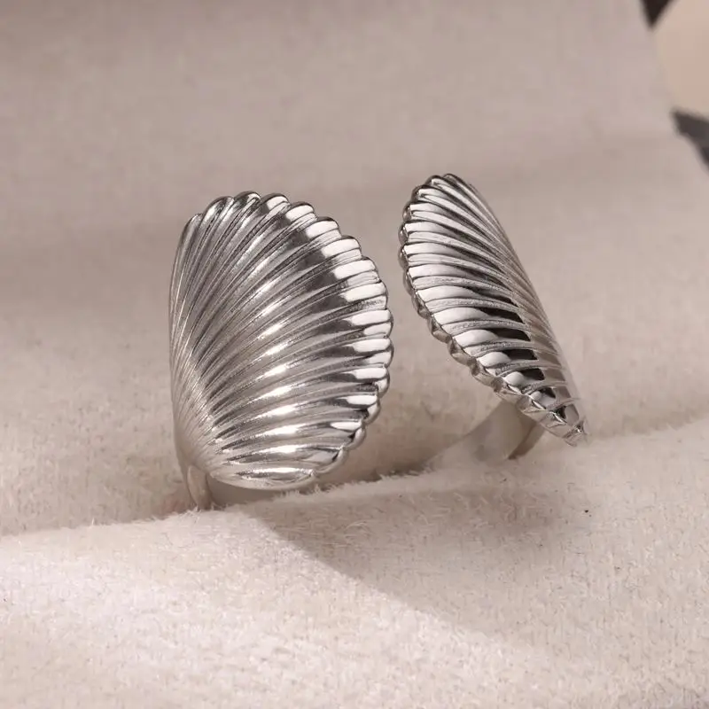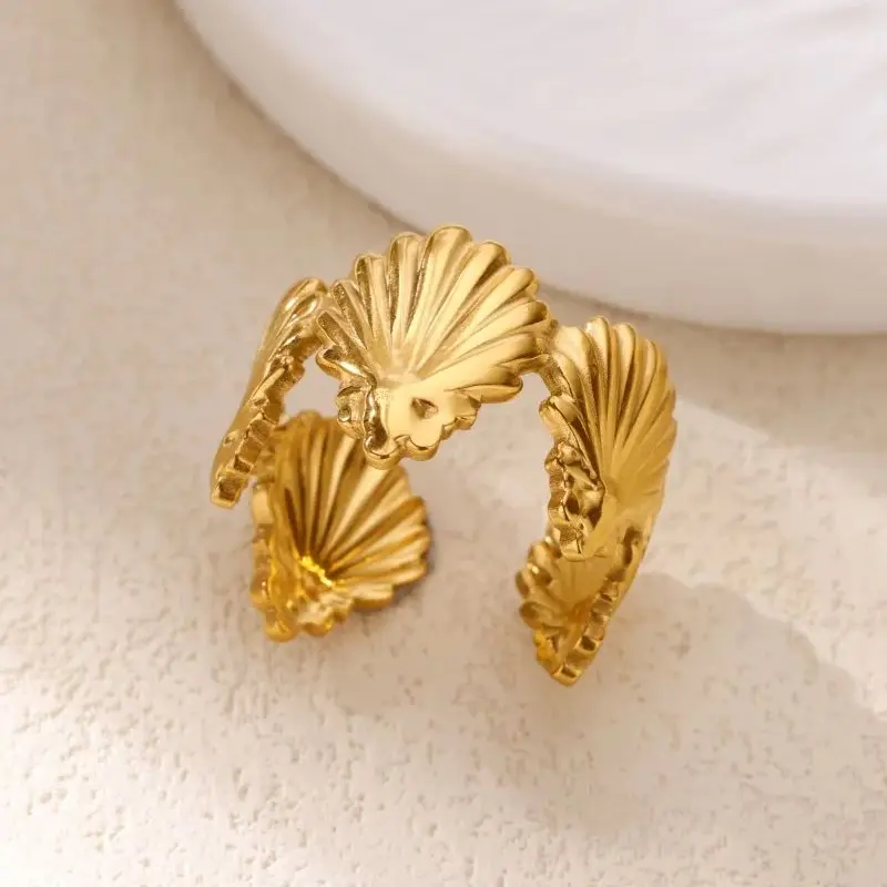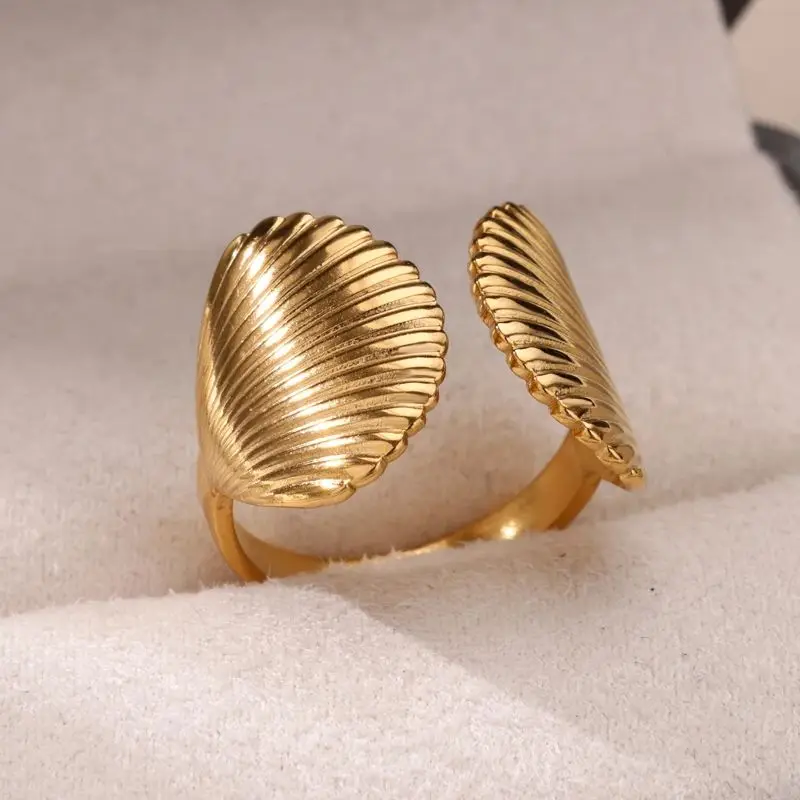 Stainless Steel Shell Rings for Women Gold Color Geometric Mussel Oyster Open Ring Aesthetic Wedding Waterproof Jewelry Gift