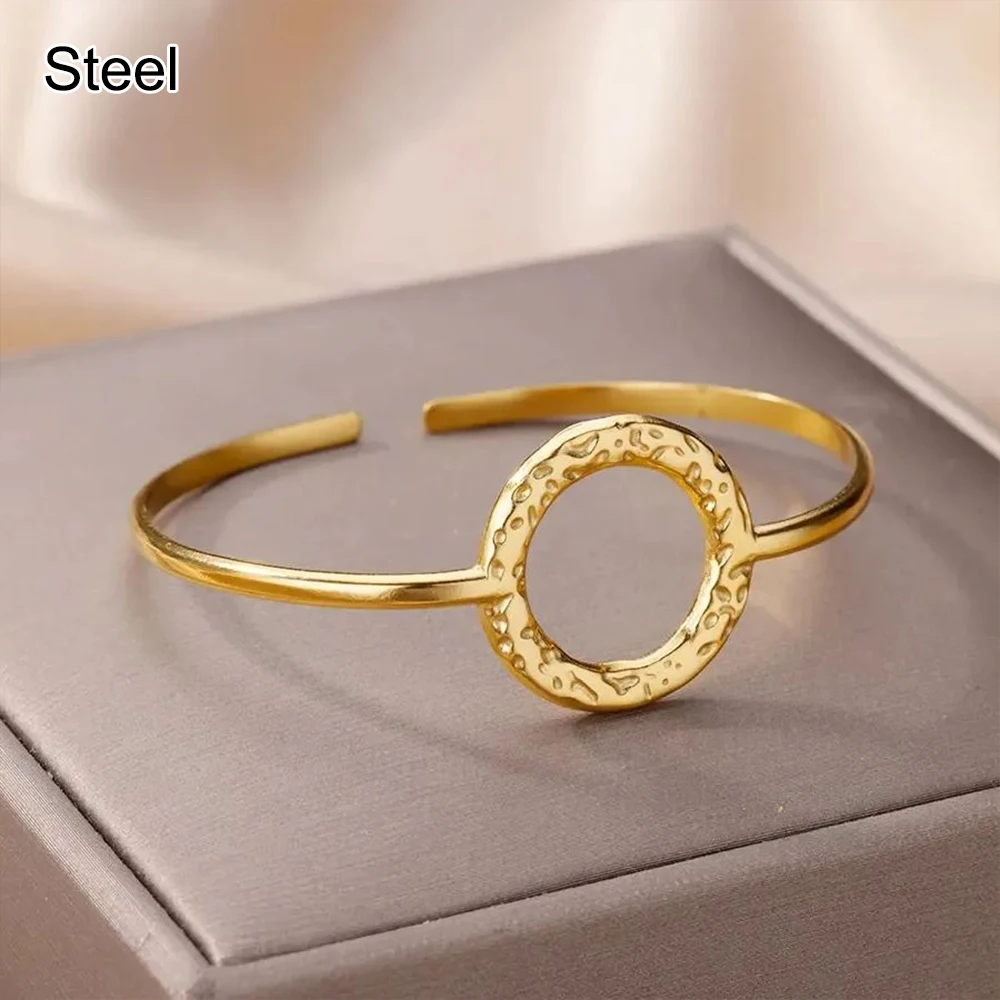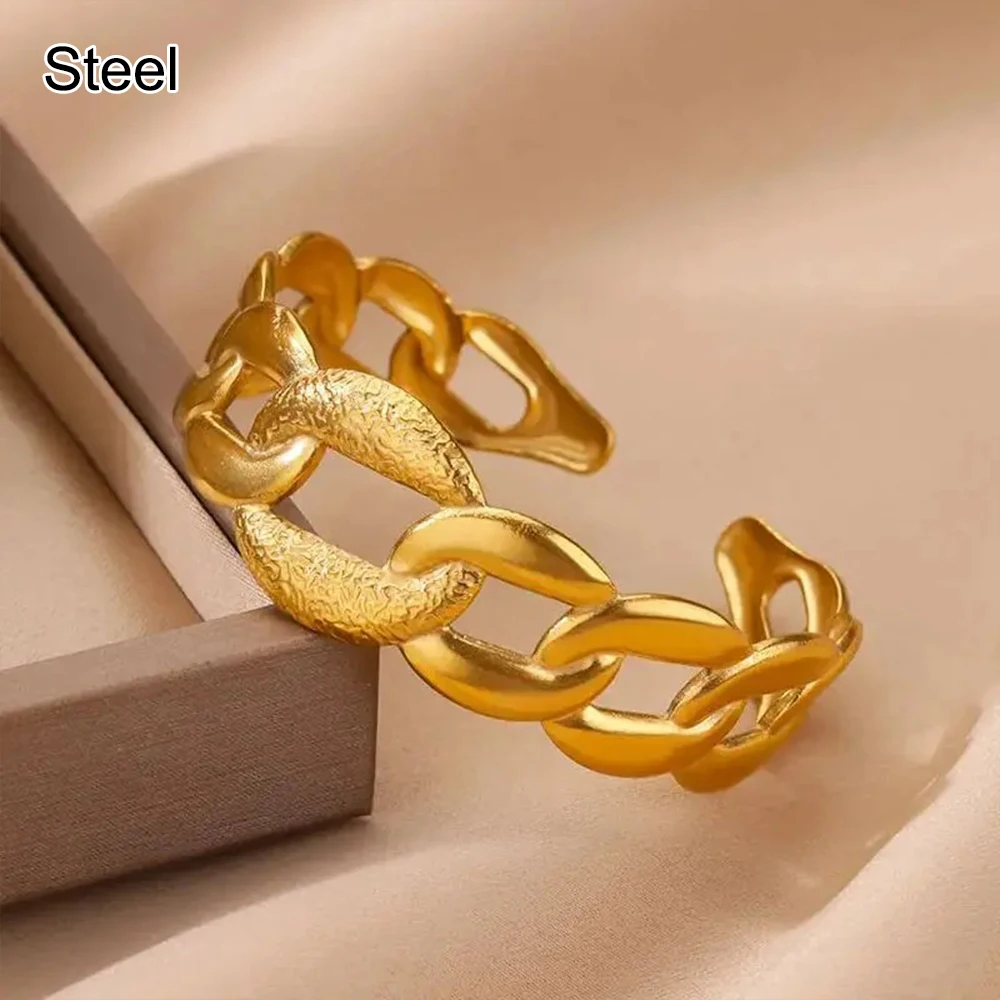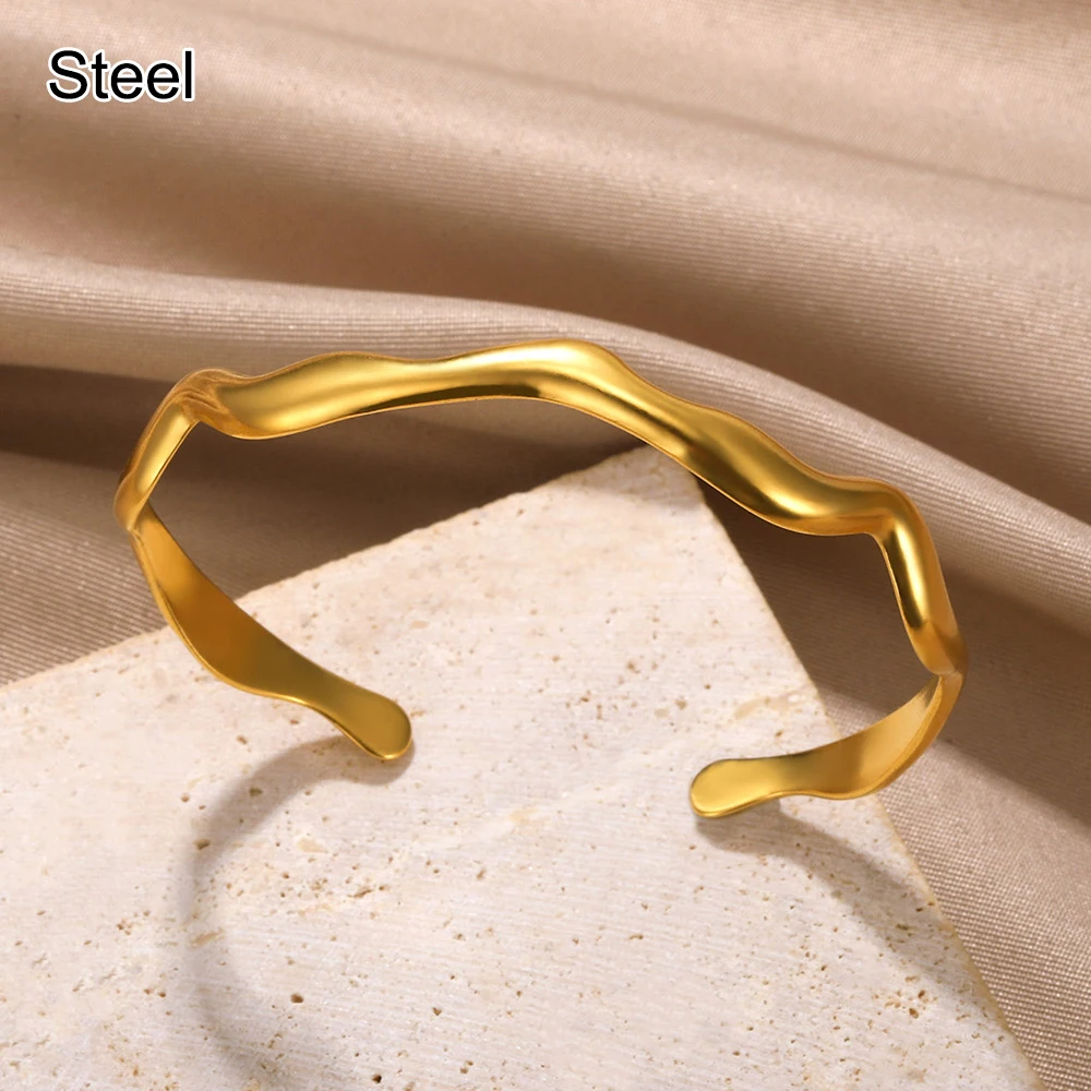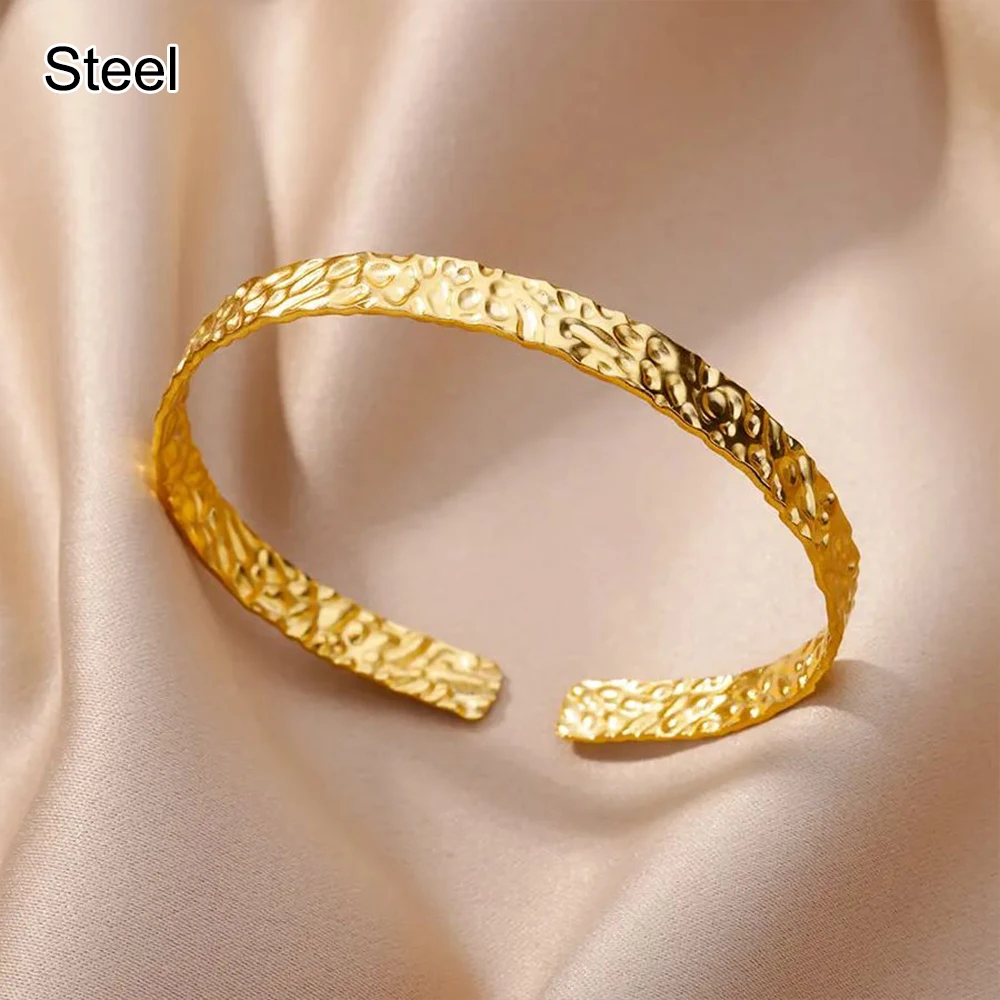 Stainless Steel Wide Bangles for Women Luxury Gold Color Open Chunky Cuff Bangle Bracelet femme Vintage Wedding Jewelry Gift
