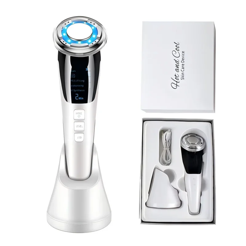 4 in 1 Warming and Cooling Microcurrent Facial Device Red Blue Light Photon Face Neck Massager Kit for Beauty Skin Care at Home