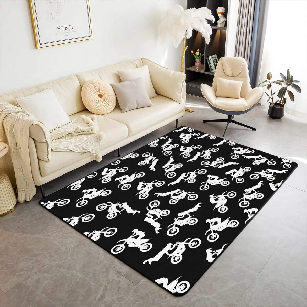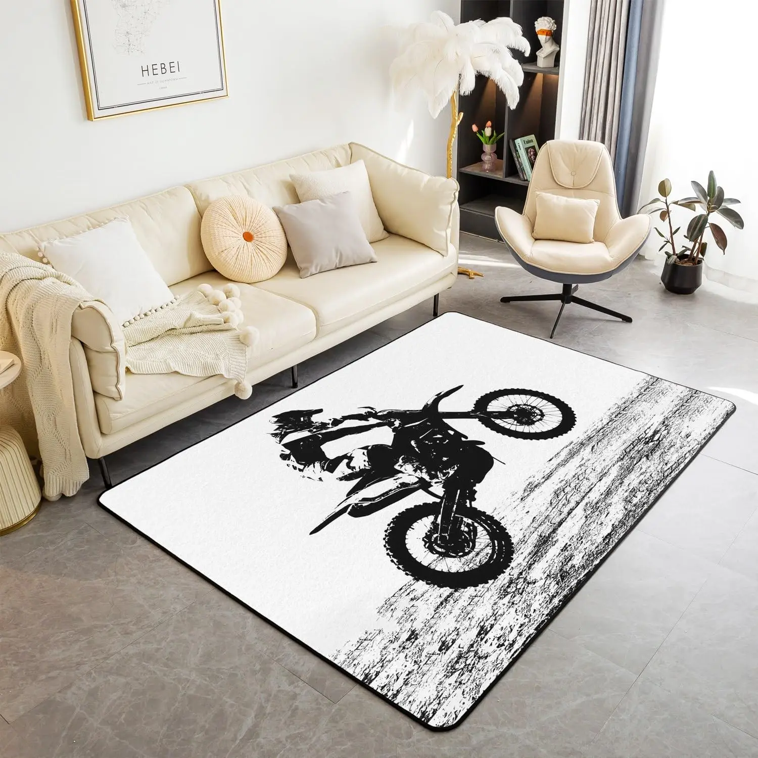 Teen Dirt Bike Area Rug for Living Room Motocross Rider Floor Mat Motorbike Extreme Sport Carpet Snow Mountain Landscape Doormat