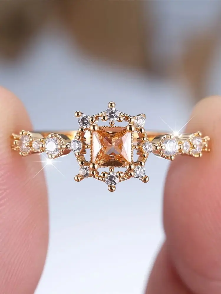 Trendy White Champagne Crystal Ring Vintage Gold Color Wedding Bands Engagement Rings For Women Men Minimalist Jewelry