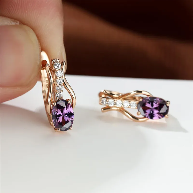 Luxury Female Small Pink Oval Zircon Stone Hoop Earrings Charm Gold Color Wedding Jewelry For Women