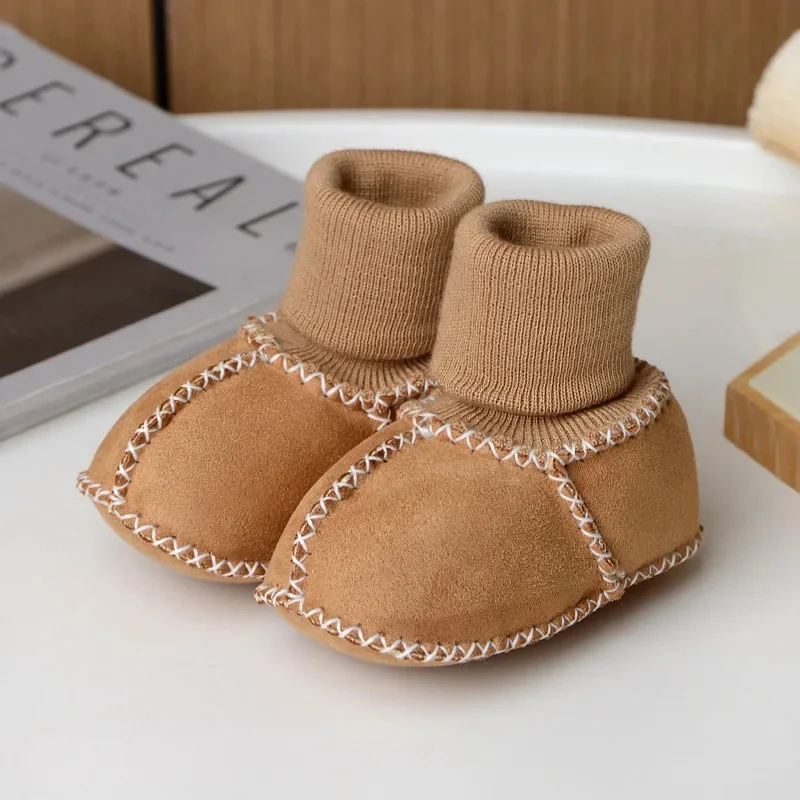 Autumn Winter Soft Bottom Baby Shoes Leather like Faux Fur Integrated Walking Shoes Non Slip Cotton Shoes for Infants 0-1 Years