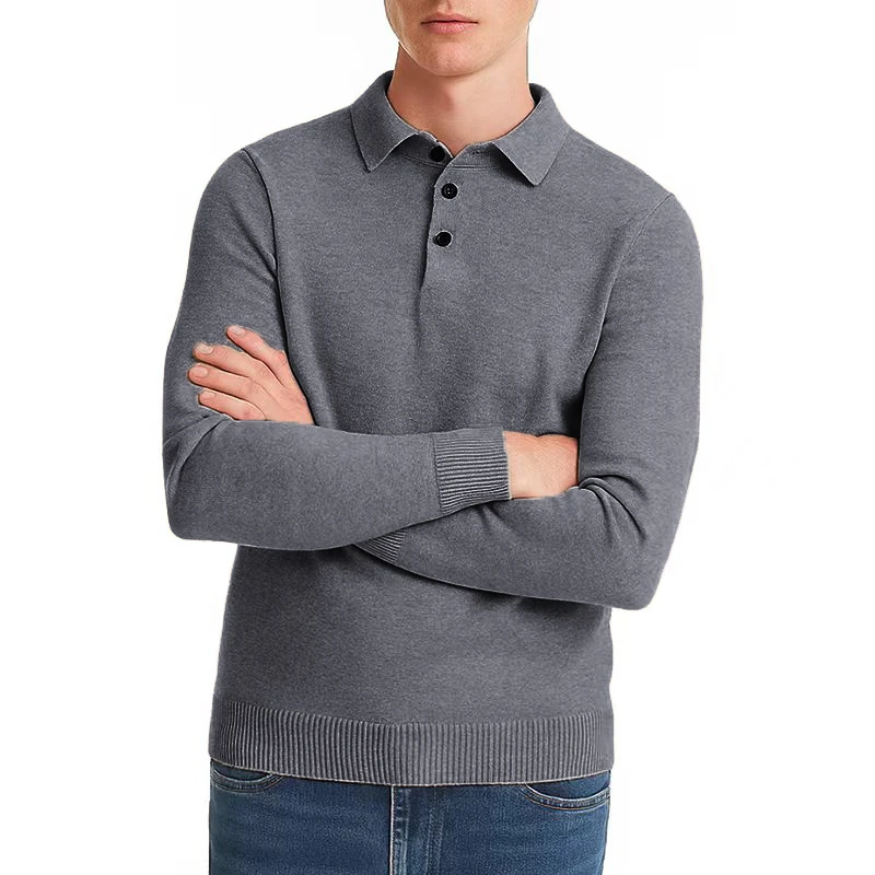 Autum Men Polo Sweaters Knit Pullovers Sweater Solid Streetwear Long Sleeved Button Sweater Male Casual Daily Warm Outerwear