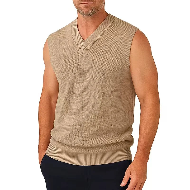 Mens Crochet Tank Tops Knitted Sleeveless Sweater Vests Casual V Neck Sleeveless Vests Casual Pullover Sweater