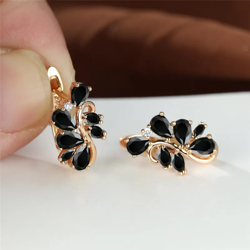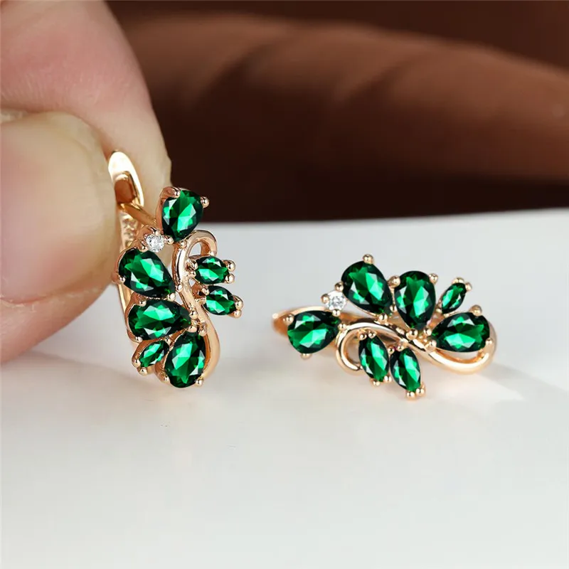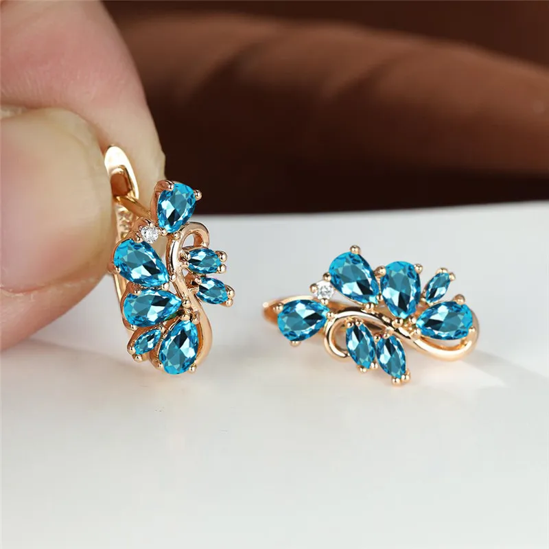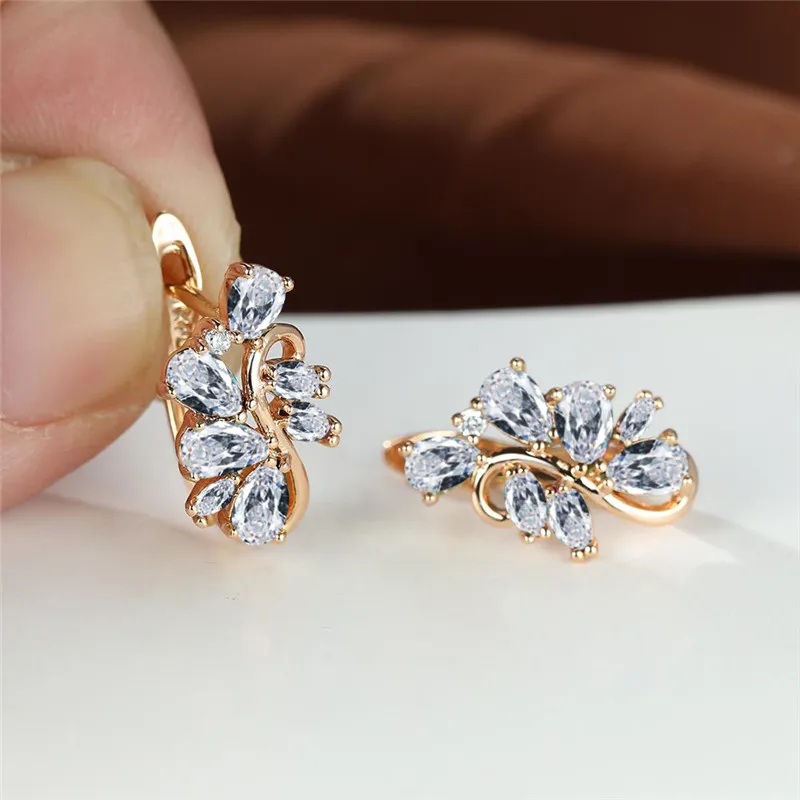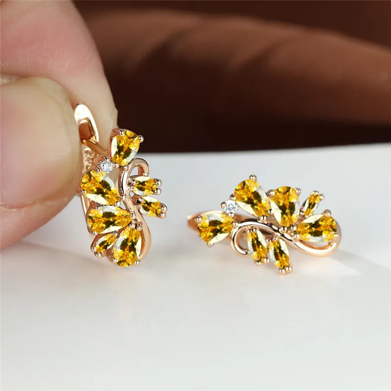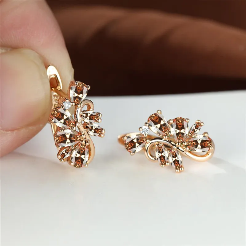 Vintage Gold Color Bridal Earrings Rainbow Crystal Small Stone Earrings Elegant Flower Multicolor Zircon Earrings For Women Gift
