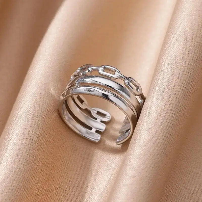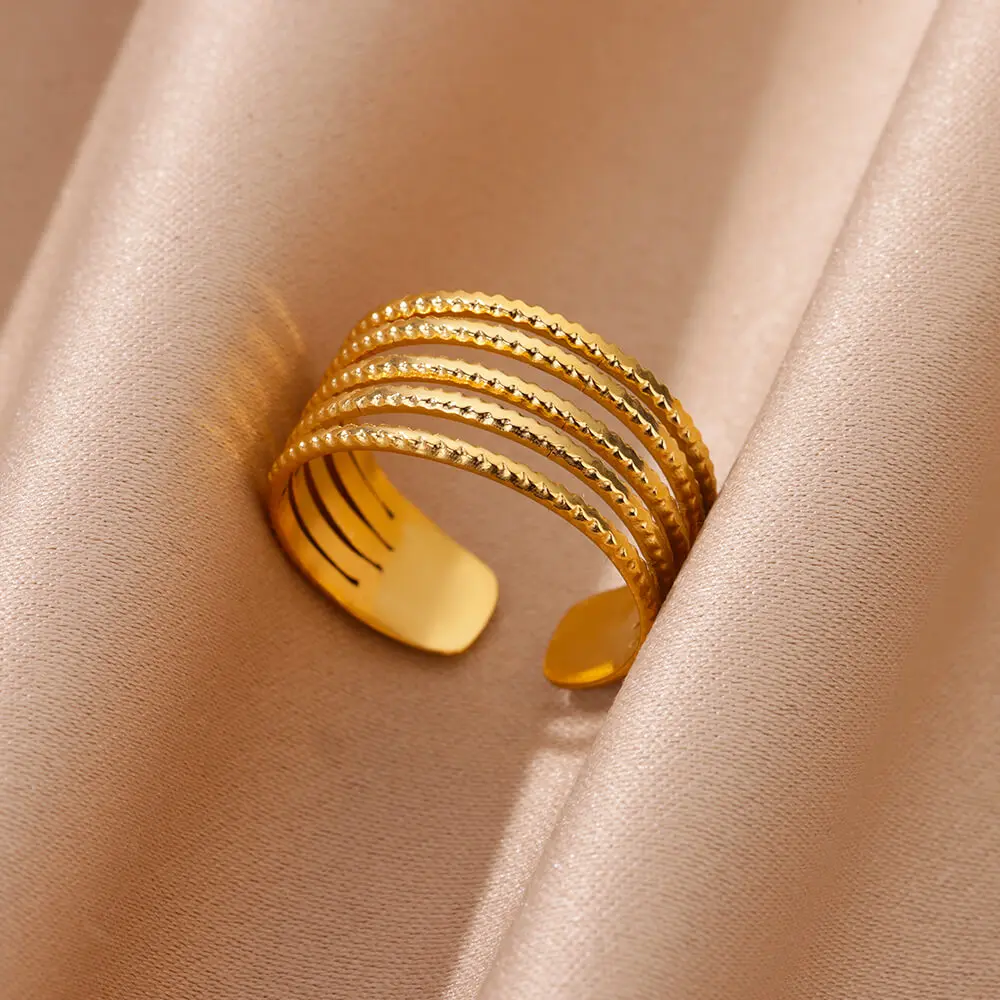 Vintage Geometric Multi-layer Rings For Women Gold Color Stainless Steel Adjustable Ring Aesthetic Wedding Jewelry Gift BFF