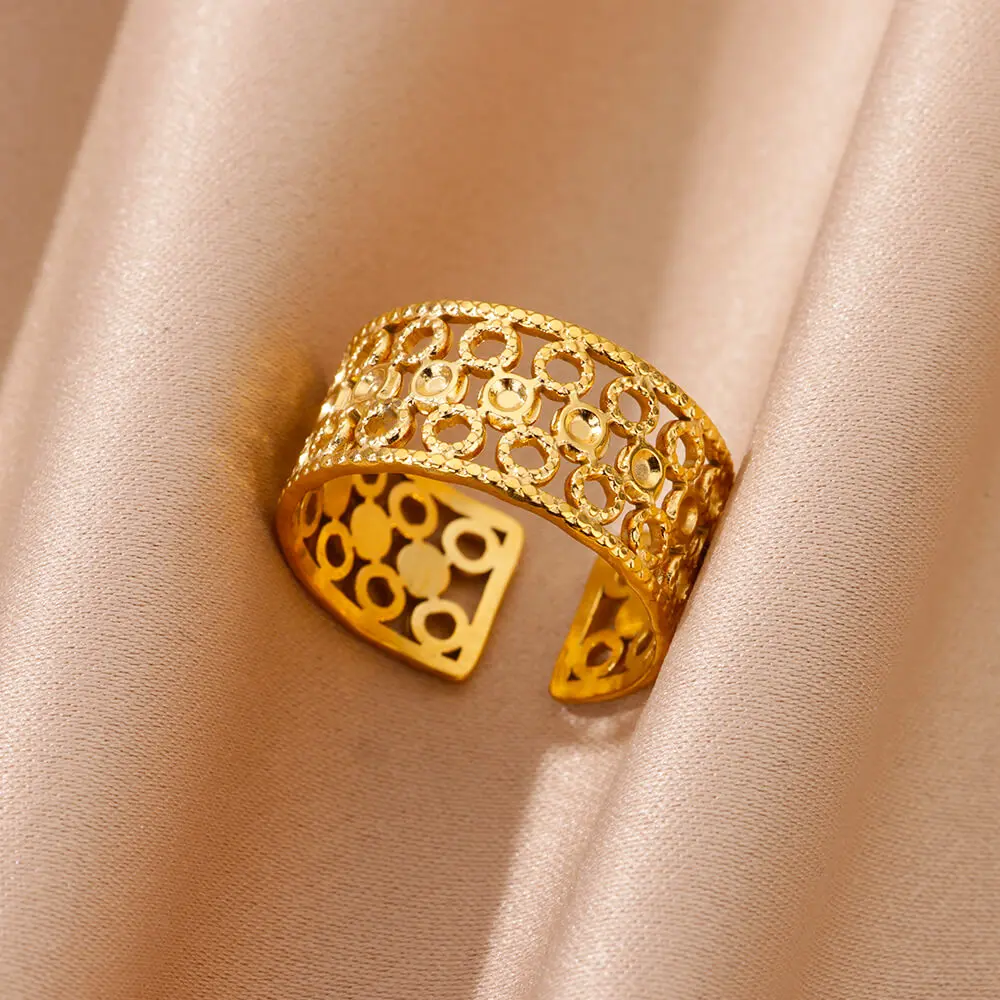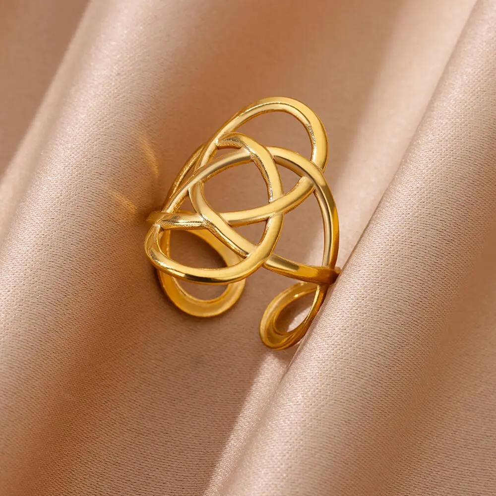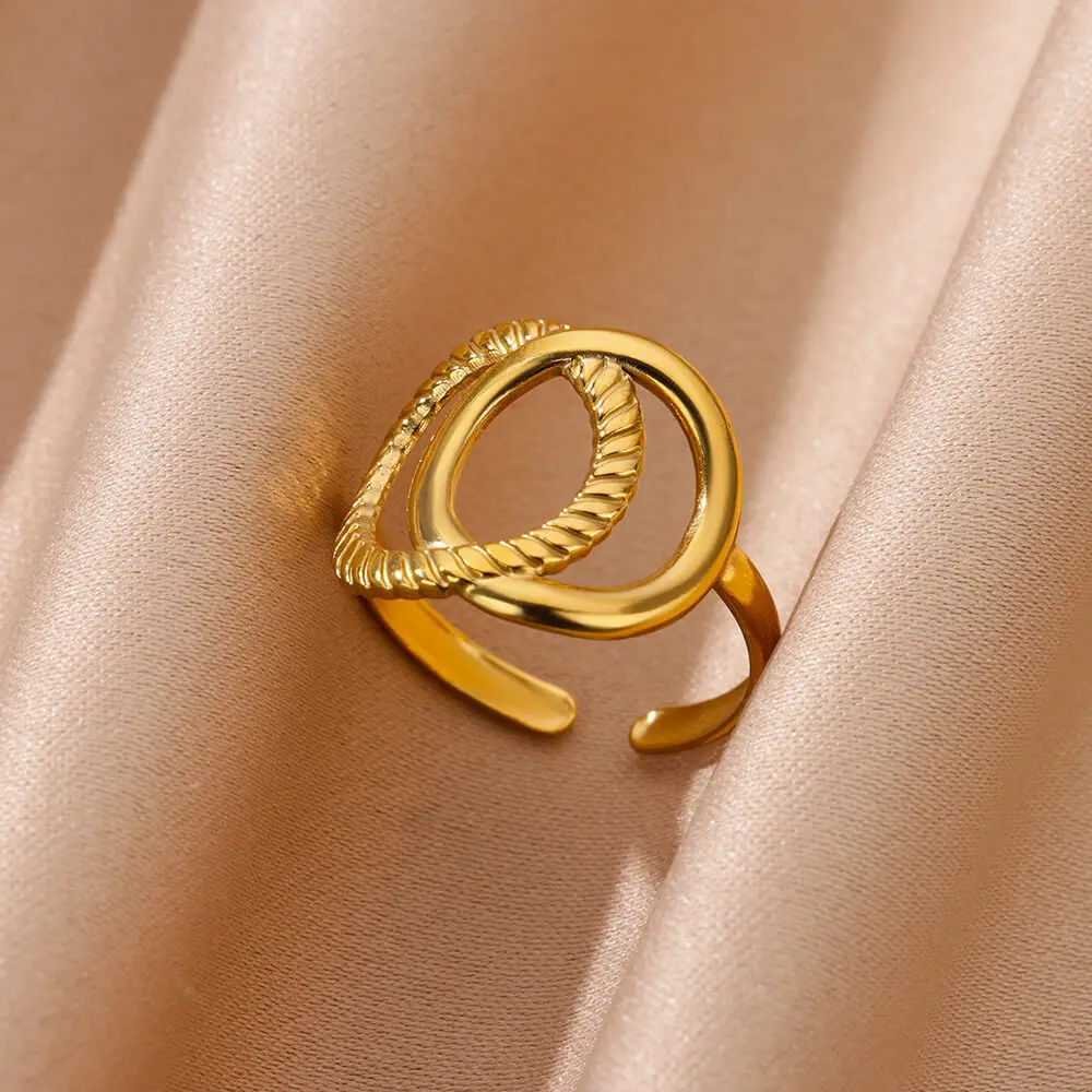 Vintage Geometric Hug Rings for Women Stainless Steel Gold Color Adjustable Wedding Ring Aesthetic Fashion Waterproof Jewelry