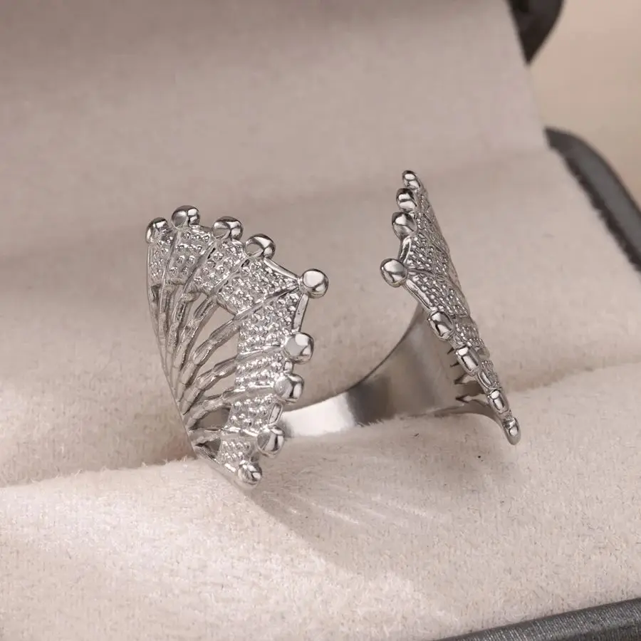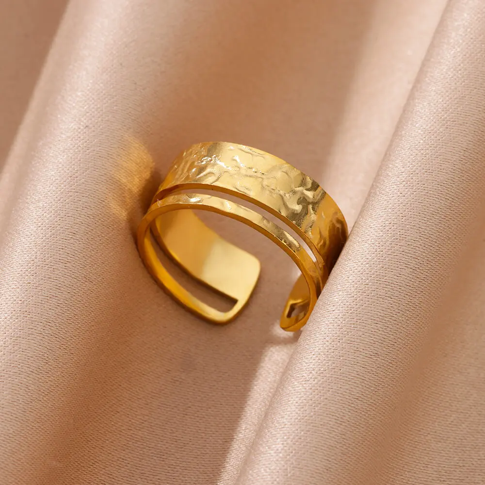 Vintage Geometric Double Layer Rings for Women Stainless Steel Gold Color Adjustable Wedding Ring Aesthetic Jewelry Gift anillos