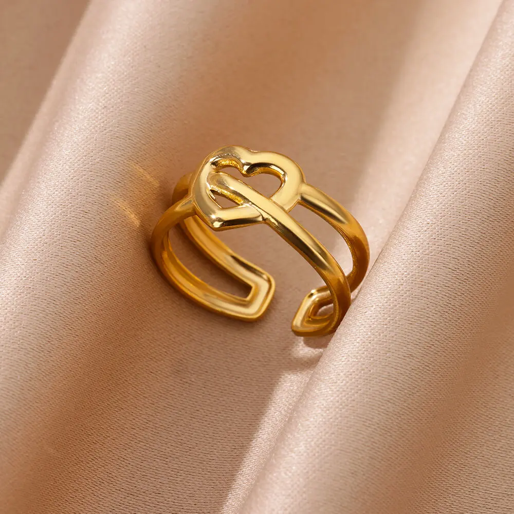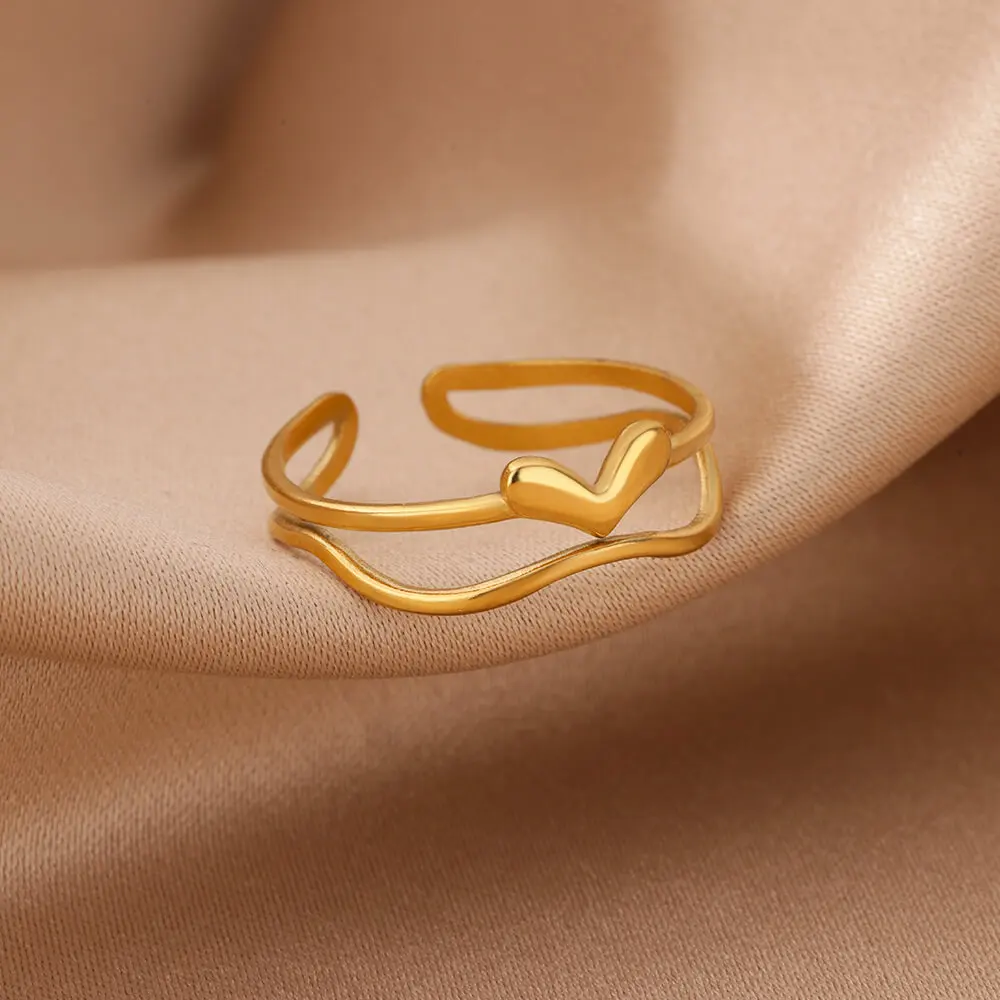 Vintage Geometric Multi Layer Rings for Women Stainless Steel Gold Color Heart Ring Fashion Wedding Party Jewelry Gift anillos