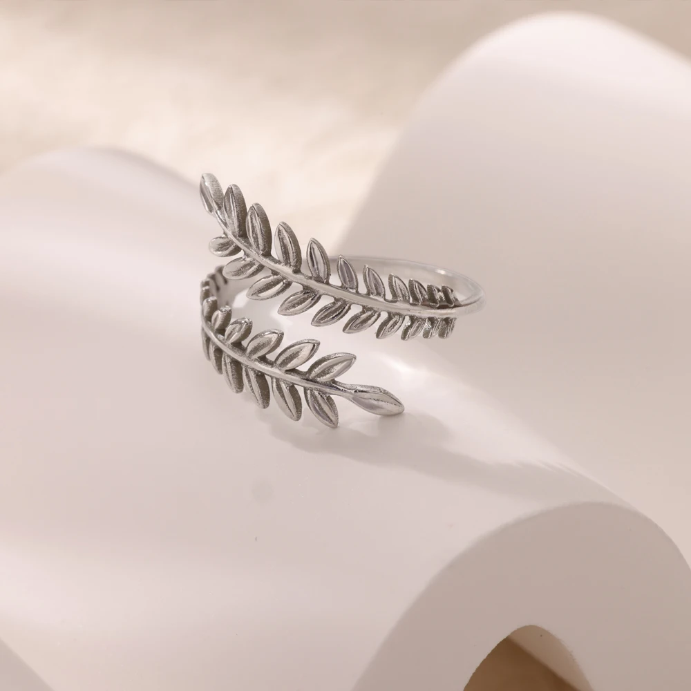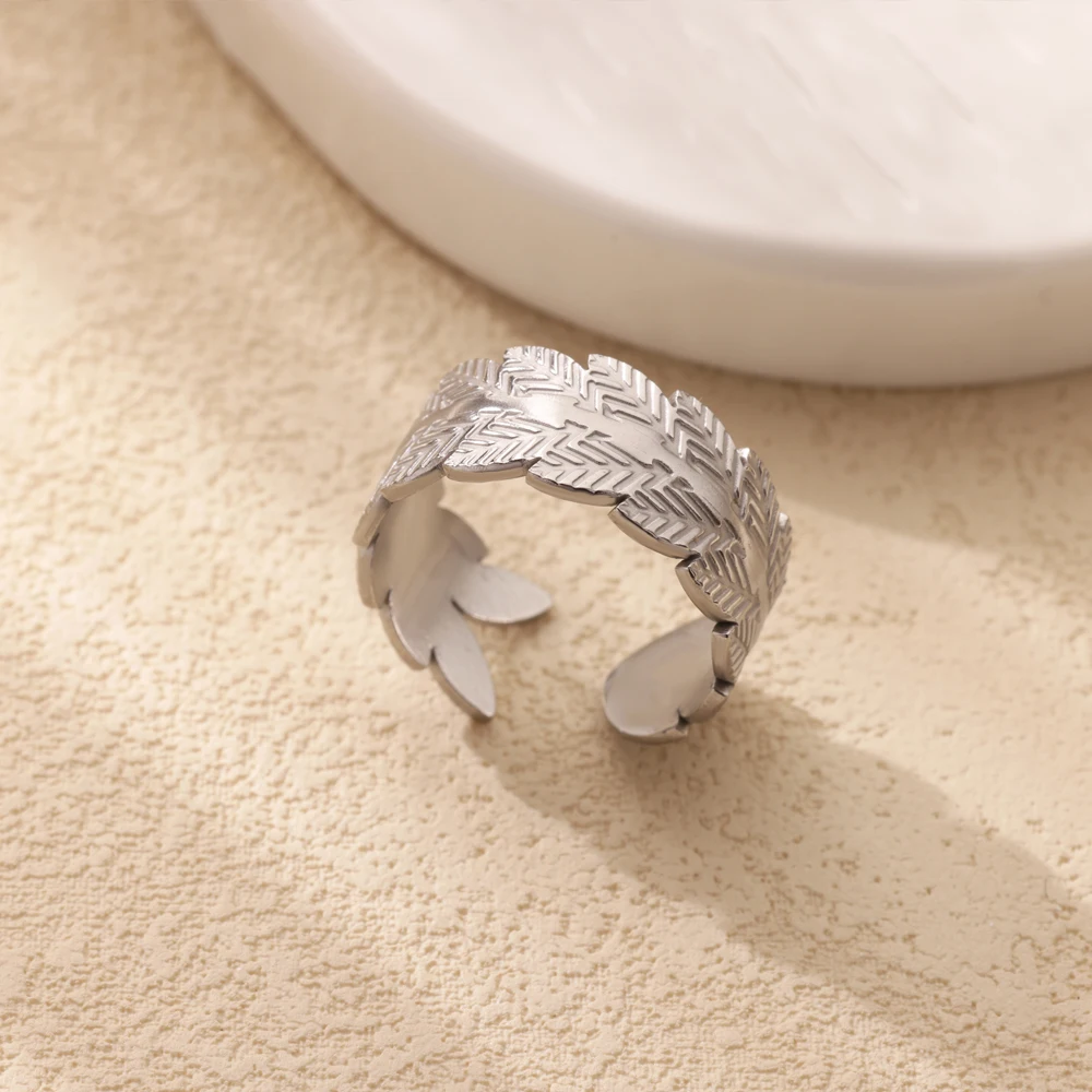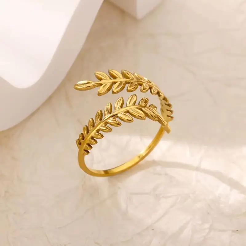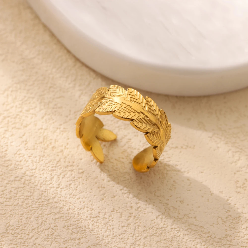 Vintage Textured Leaf Rings for Women Stainless Steel Gold Color Hollow Leaf Ring Aesthetic Wedding Fashion Jewelry Gift