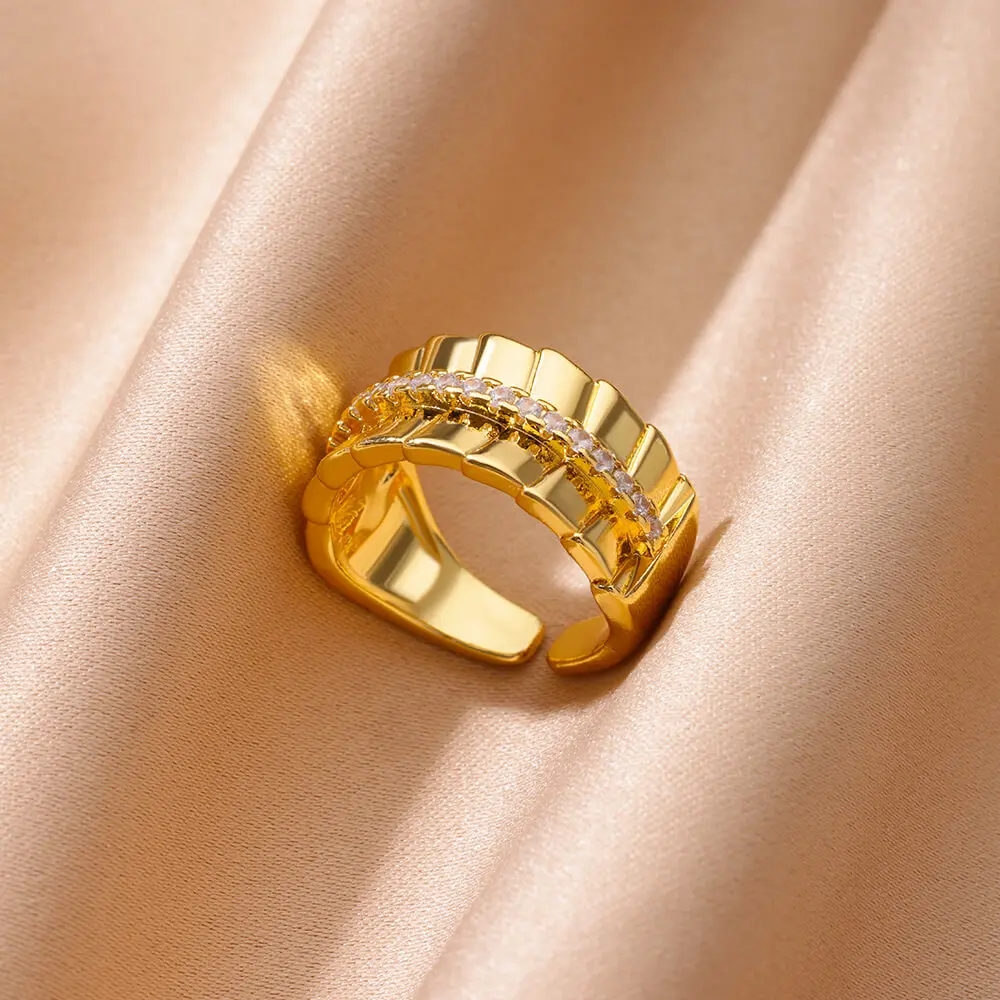 Vintage Textured Geometric Rings for Women Stainless Steel Gold Color Adjustable Wedding Ring Aesthetic Jewelry Gift anillos