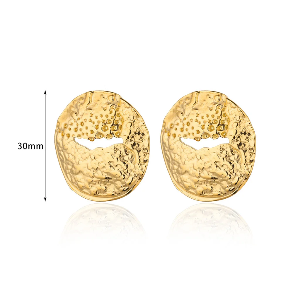 Vintage Textured Round Earrings for Women Gold Color Stainless Steel New In Earrings 2024 Trend Wedding Party Jewelry Gift