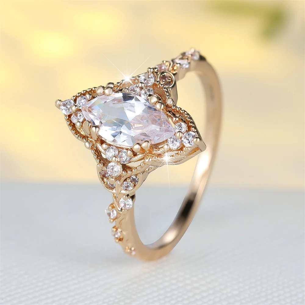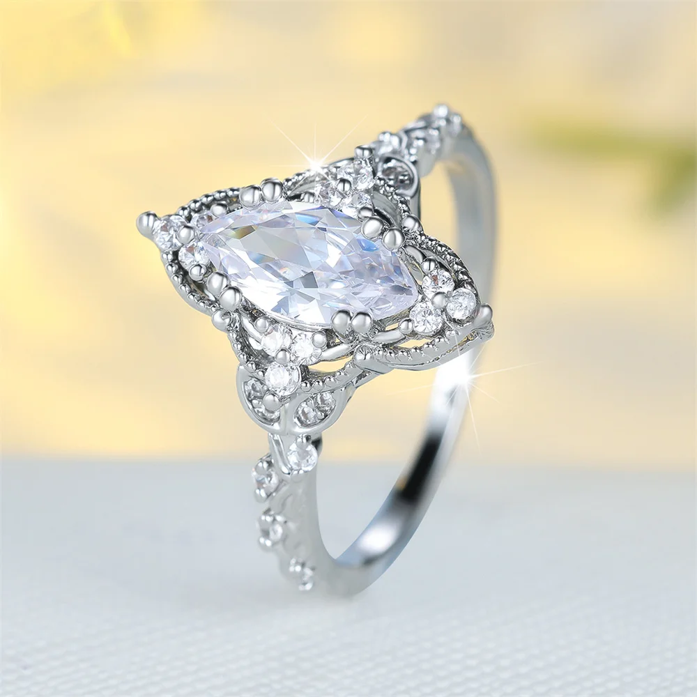 White Zircon Big Marquise Stone Rings For Women Vintage Gold Silver Color Engagement Ring Wedding Jewelry Bridal Birthday Gift