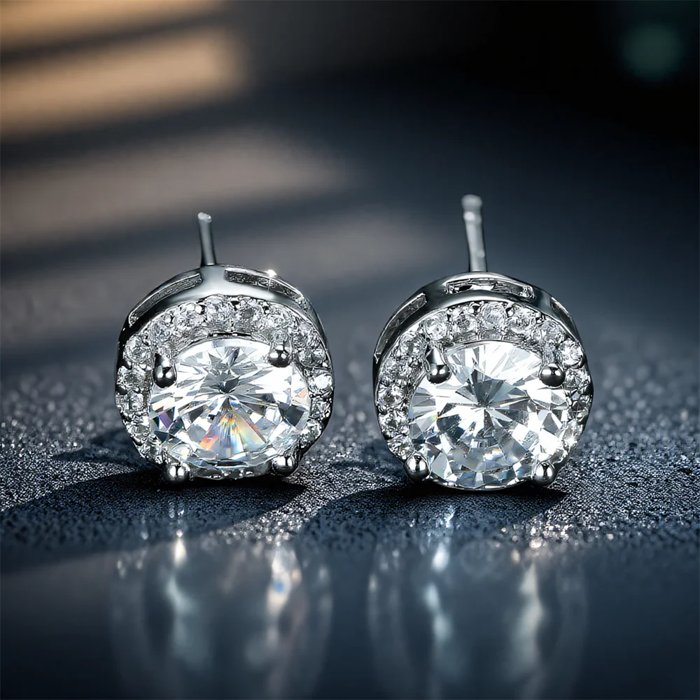 White Zircon 6mm Round Stone Small Stud Earrings For Women Fashion Crystal Silver Color Wedding Earring Versatile Jewelry Gifts