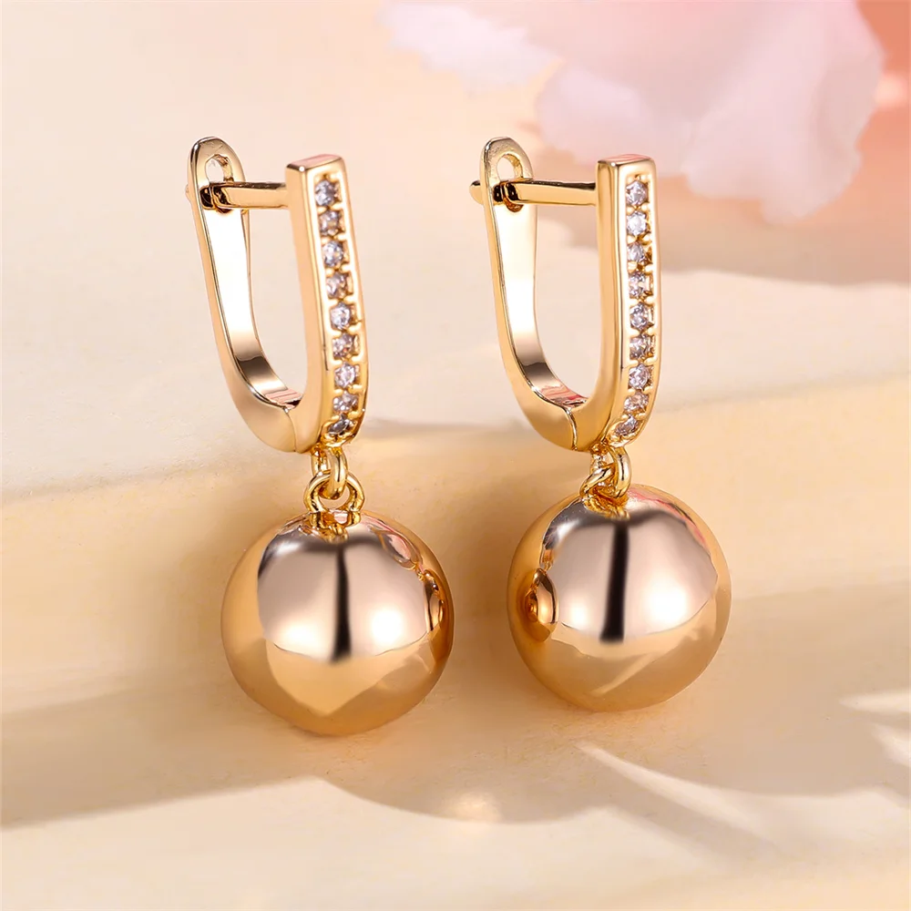 White Zircon Cute Round Ball Pendant Hoop Earrings For Women Vintage Gold Color Ear Buckle Wedding Jewelry Engagement Party Gift