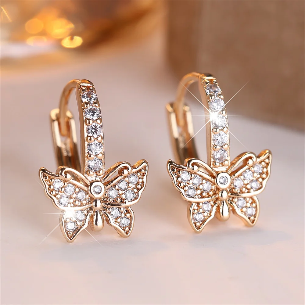 White Zircon Cute Small Butterfly Hoop Earrings For Women Vintage Gold Color Animal Ear Buckle Wedding Jewelry Versatile Gifts