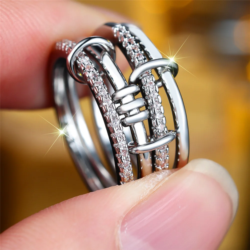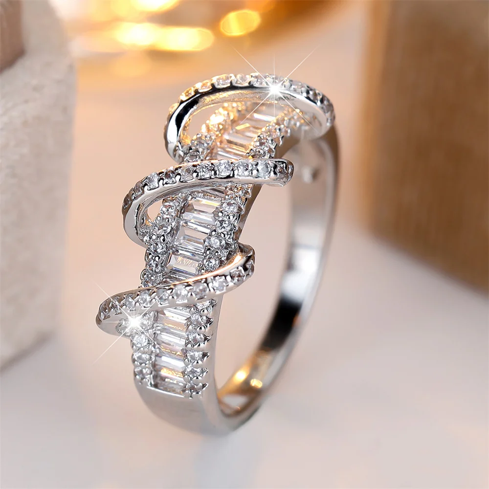 White Zircon Geometric Crystal S Shaped Rings For Women Classic Silver Color Engagement Bands Wedding Jewelry Bridal Party Gifts