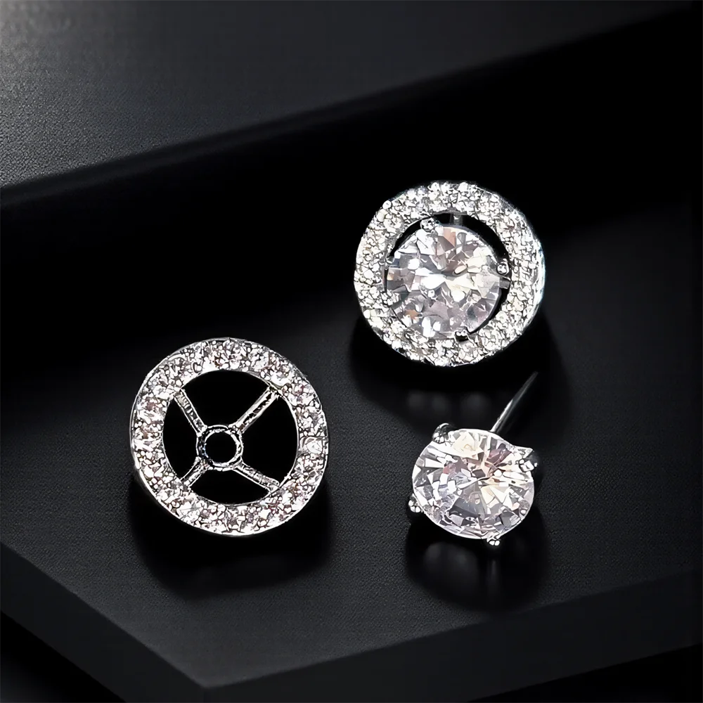 White Zircon Luxury Crystal Small Stud Earrings Sets For Women Men Vintage Silver Color Wedding Earring Versatile Jewelry Gifts