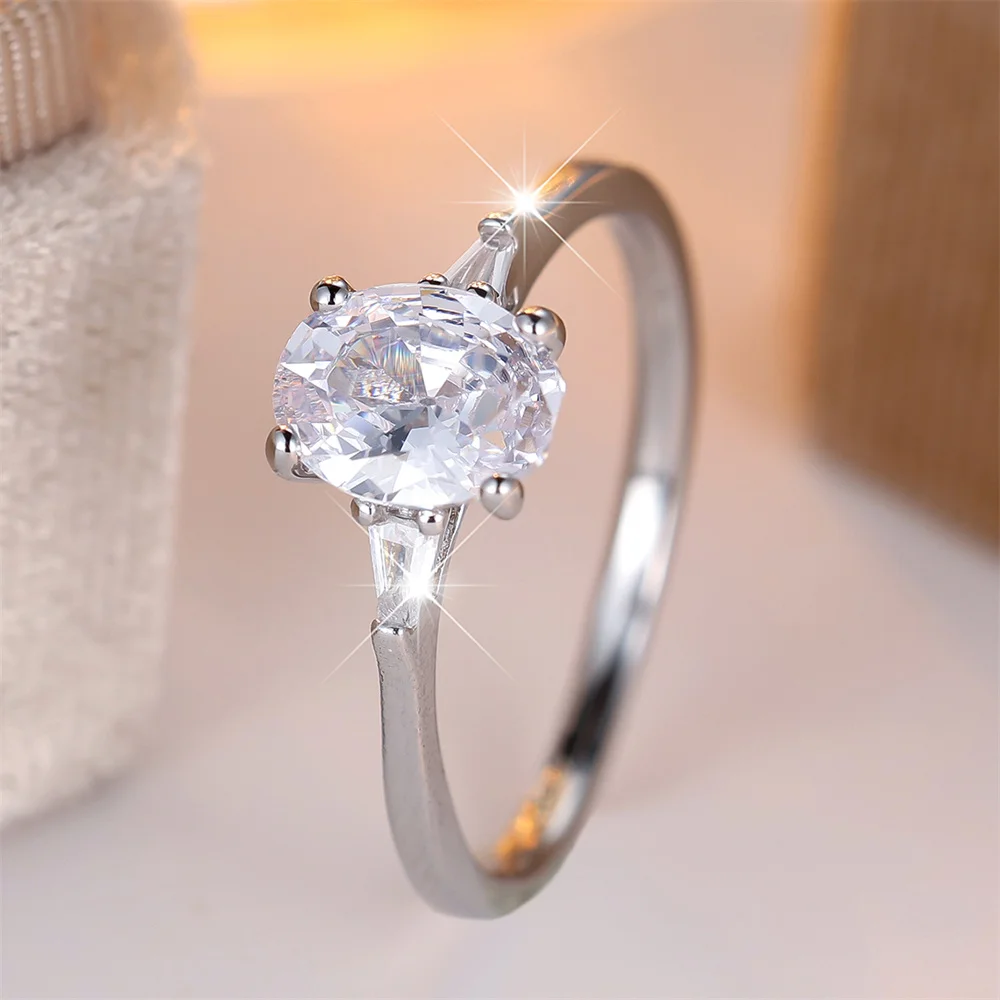 White Zircon Luxury Crystal Oval Stone Rings For Women Trendy Silver Color Engagement Bands Wedding Jewelry Bridal Birthday Gift