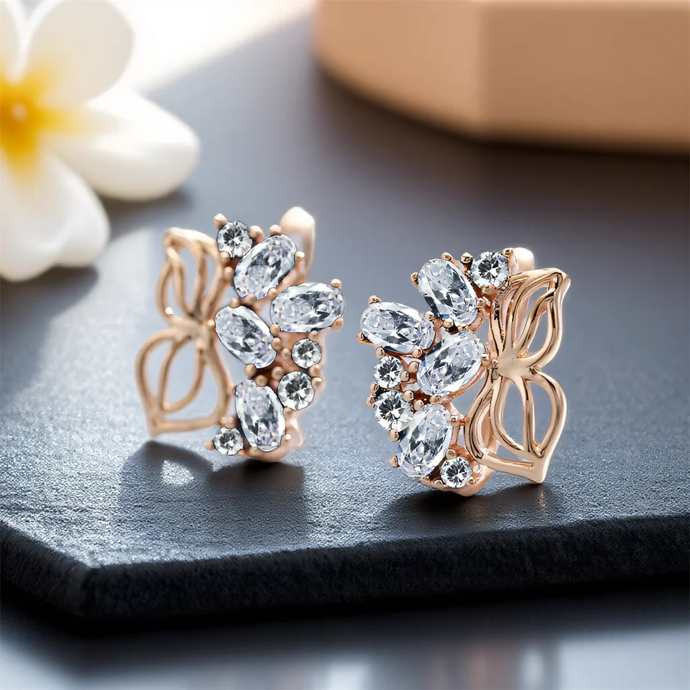 White Zircon Full Stone Cute Butterfly Hoop Earrings For Women Vintage Gold Color Ear Buckle Wedding Jewelry Versatile Gifts