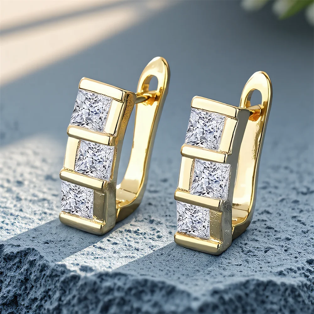 White Zircon Geometric Square Stone Hoop Earrings For Women Vintage Gold Color Ear Buckle Wedding Party Jewelry Versatile Gifts