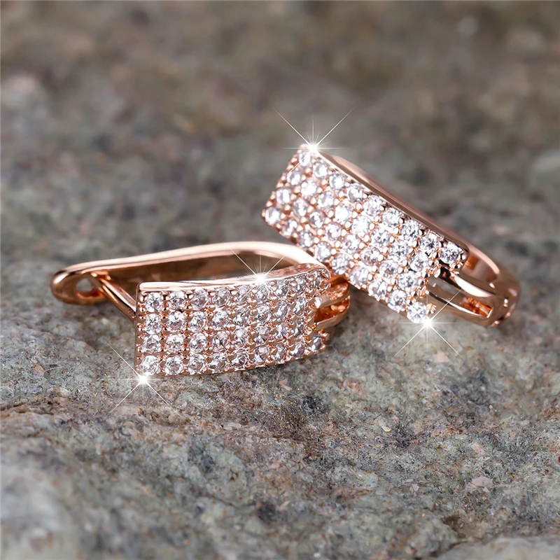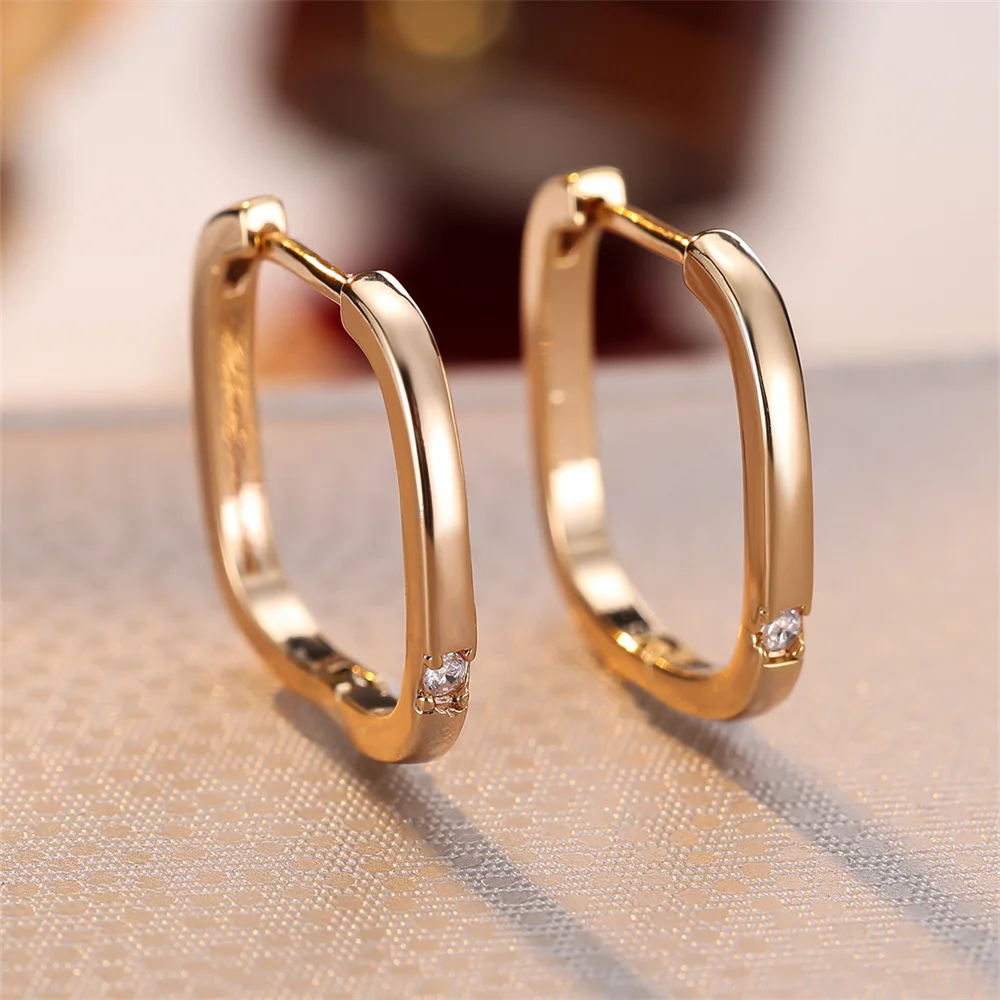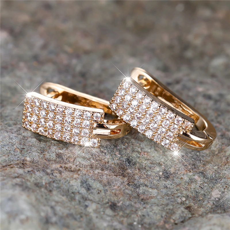 White Zircon Tiny Round Stone Square Hoop Earrings For Women Vintage Gold Color Ear Buckle Wedding Jewelry Engagement Party Gift