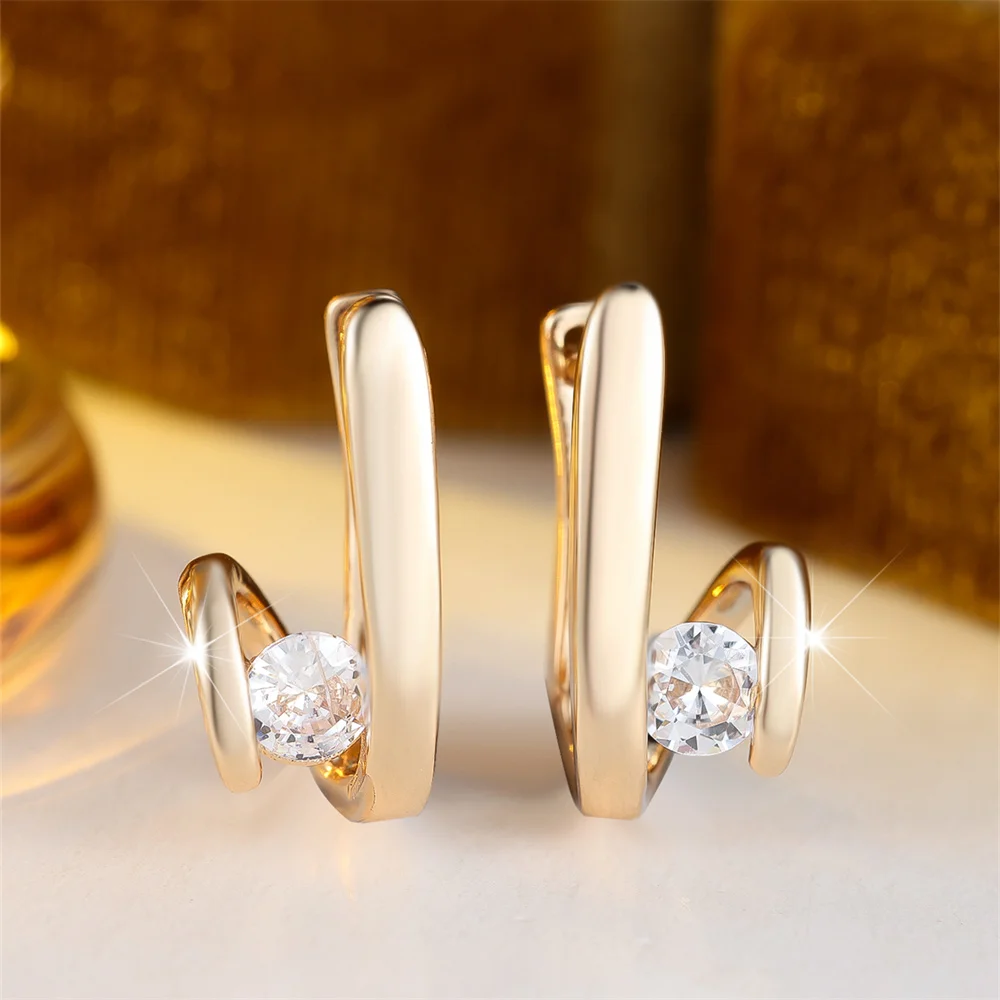 White Zircon Small Round Stone Hoop Earrings For Women Charm Rose Gold Color Tiny Earring Wedding Jewelry Gift