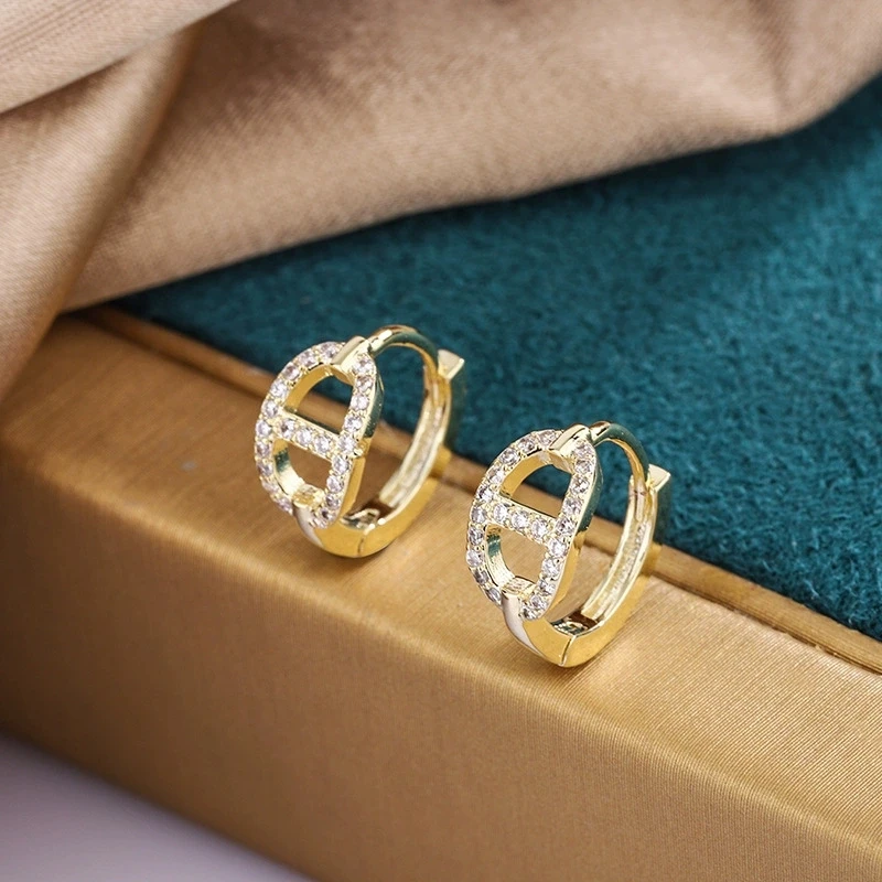 White Zircon Small Round Stone Hoop Earrings For Women Vintage Gold Color Tiny Ear Buckle Wedding Jewelry Engagement Party Gifts