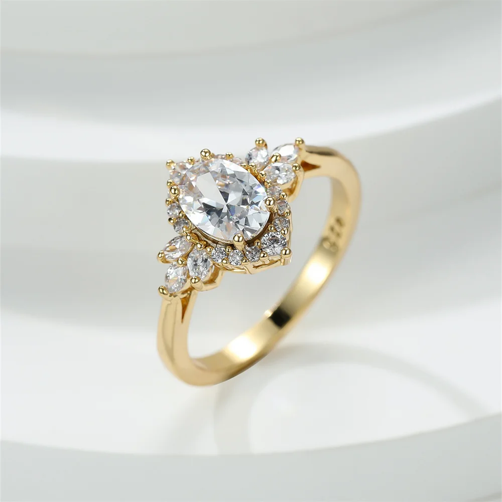 White Zircon Oval Stone Luxury Crystal Leaf Rings For Women Vintage Gold Color Engagement Ring Wedding Bands Jewelry Bridal Gift