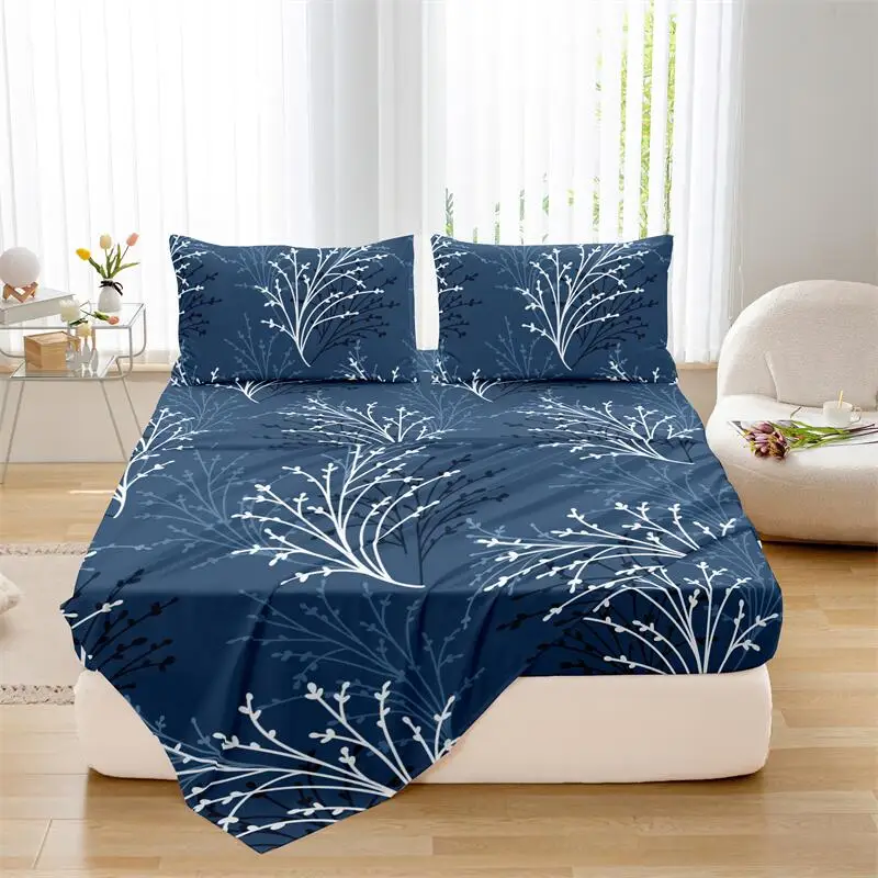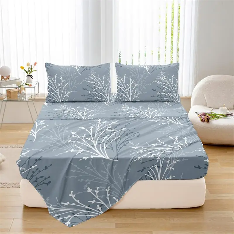 4pcs plant-based brushed Fitted sheet+ flat sheet pillowcase set skin friendly breathable Queen Size Flat bed sheet Pillowcases