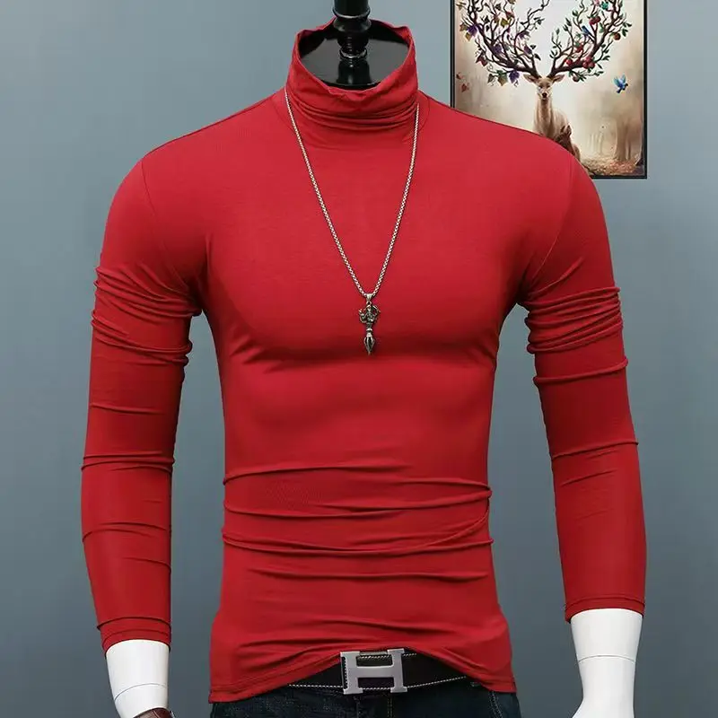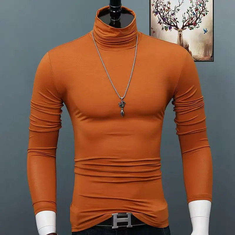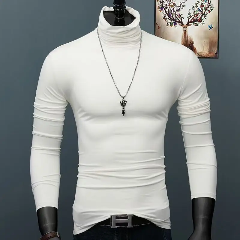 2025 Autumn Winter Men’s High Neck T-shirt Slim Fit Fashion High Elastic Long Sleeve Cotton Casual Breathable Apparel Pullover