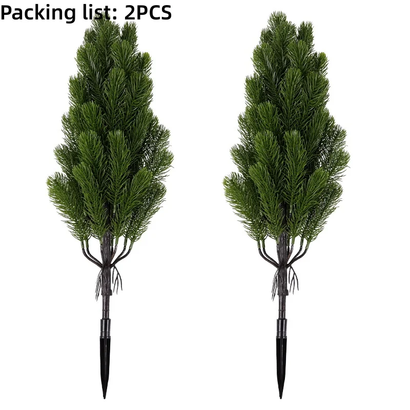 2pcs Artificial Pine Needle Christmas Trees – Indoor/Outdoor Greenery with Sturdy Black Pointed Base, Mini Holiday Decor