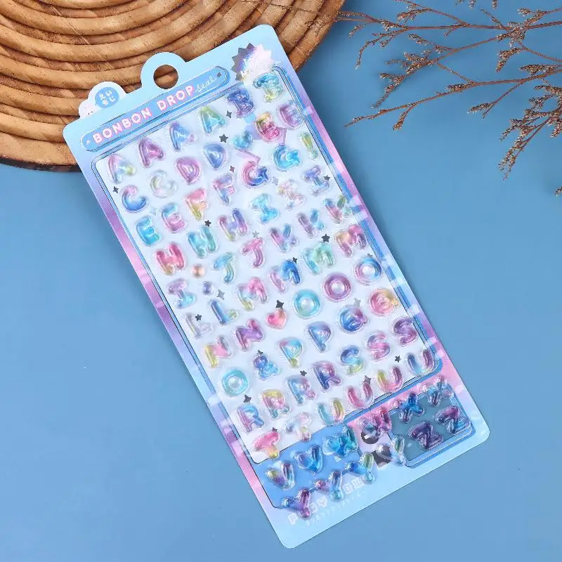 Colorful 3D Cartoon Alphabet Relief Sticker DIY Journal Planner Photo Decorations Student Reward Sticker Stationery