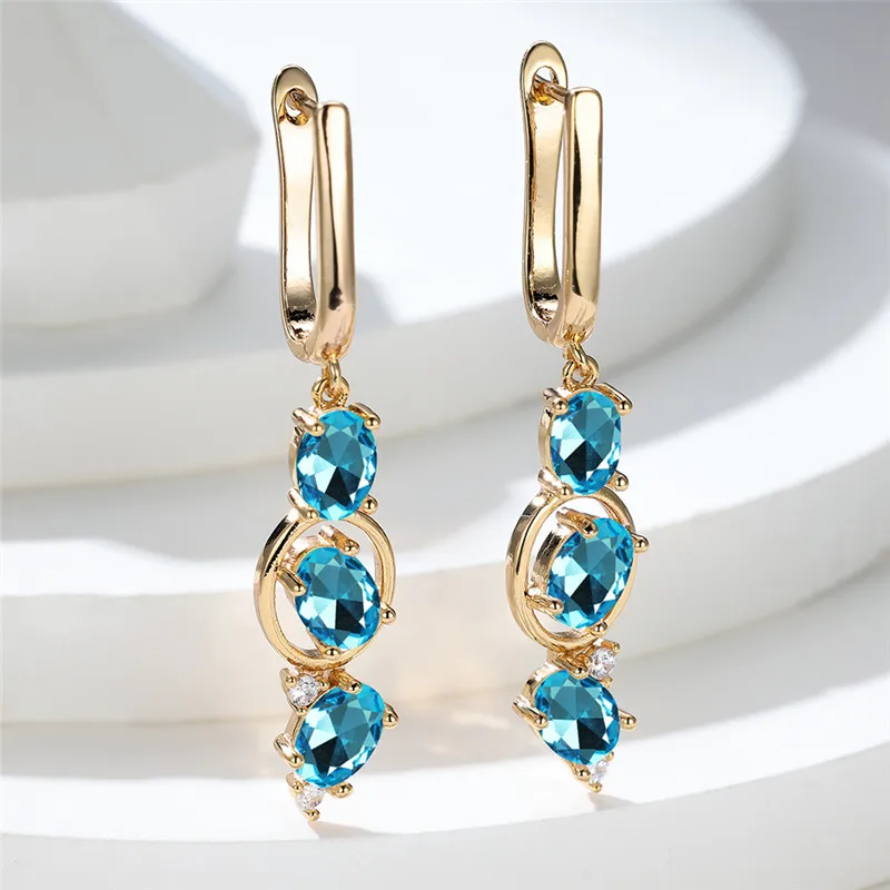 Cute Female Red Zircon Long Hoop Earrings Vintage Green Oval Gold Color Wedding Jewelry For Women