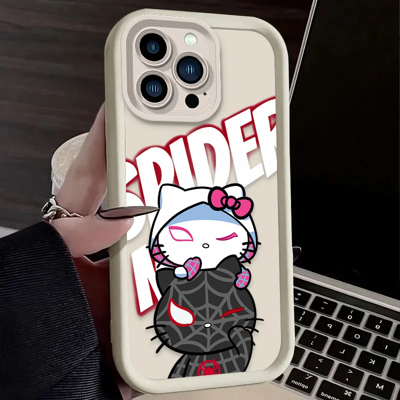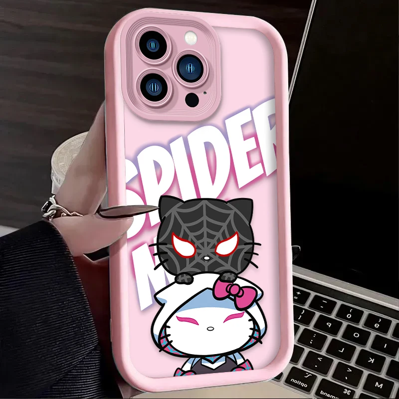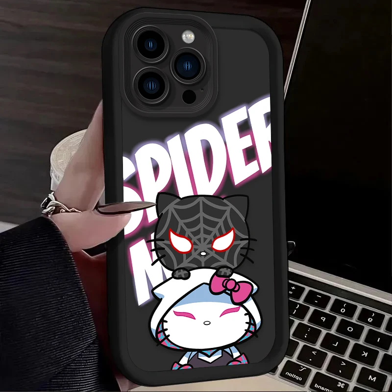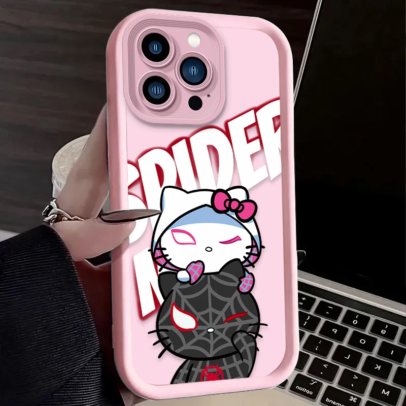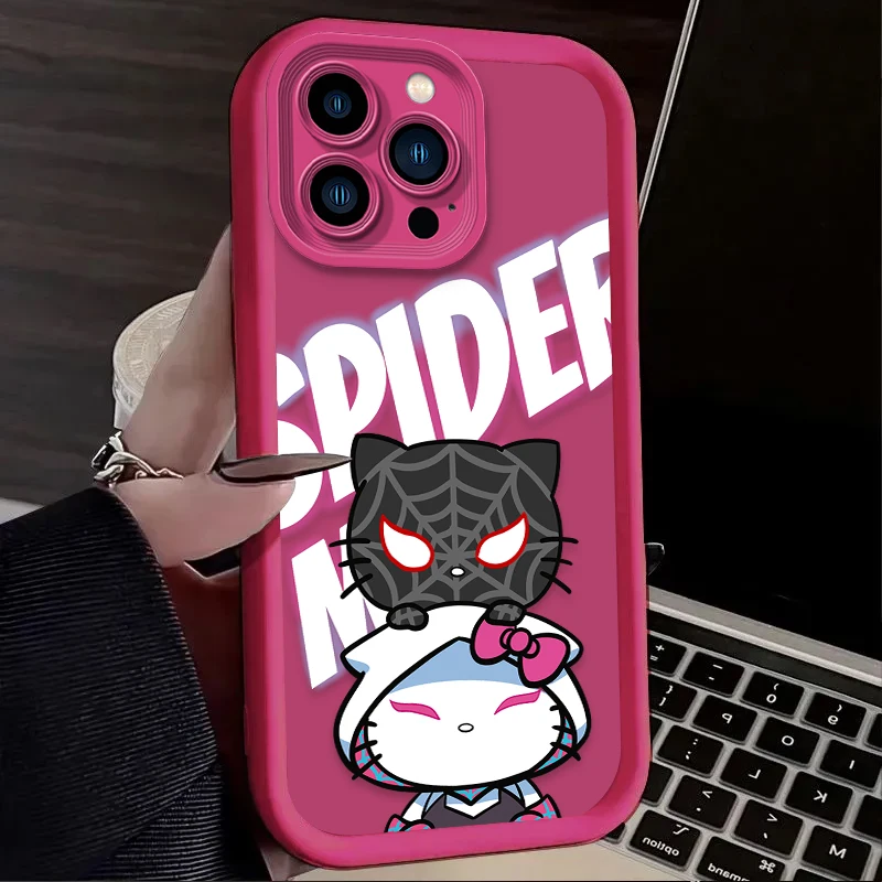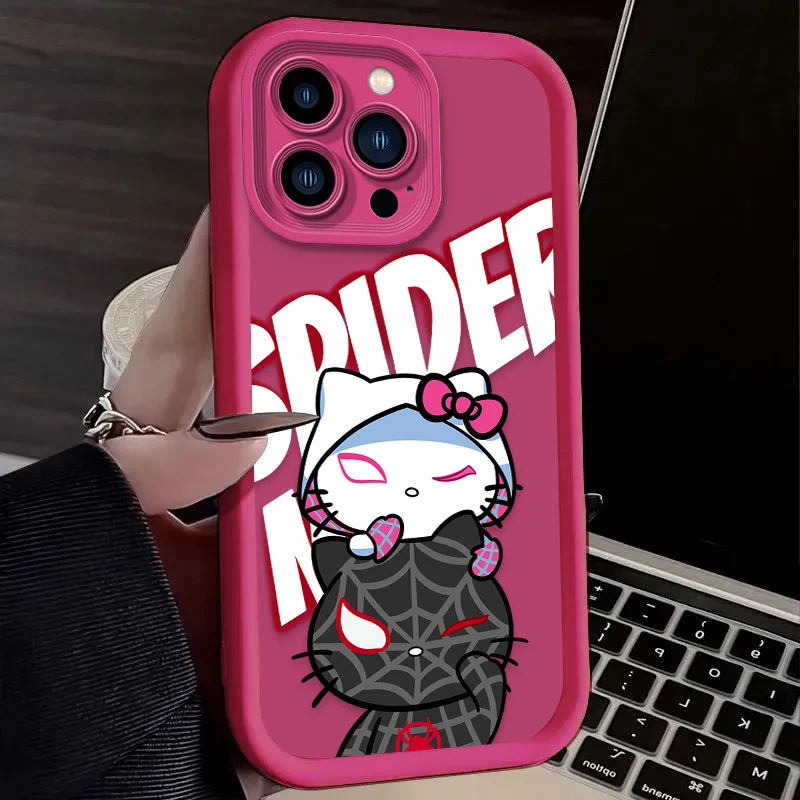 Marvel Spider Man Hello Kitty Case for iPhone 16 15 14 13 12 11 Pro Max XS X XR 8 7 6S Plus SE 2020 Silicone Shockproof Cover