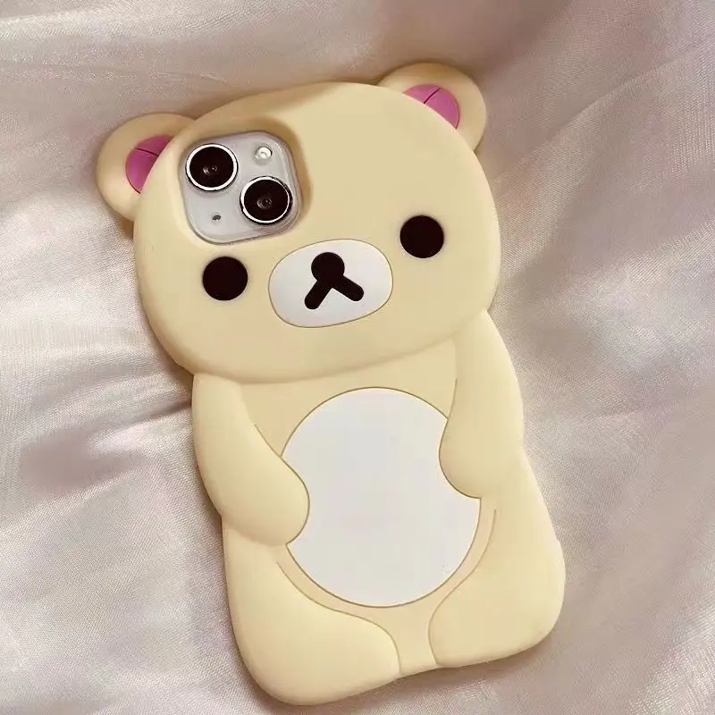 For iPhone SE X XS XR 4 4S 5 5S 7 8 11 12 13 14 15 Plus 16 17 Pro Max 3D Bear Couple Silicone Cartoon Phone Case