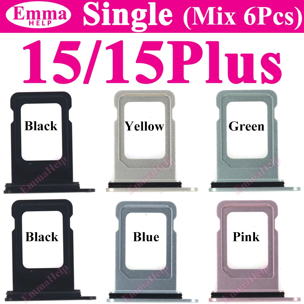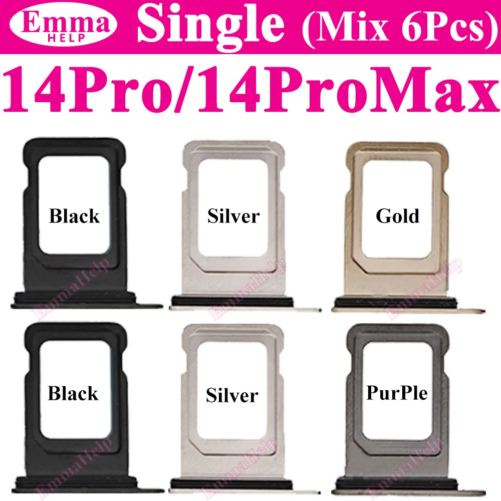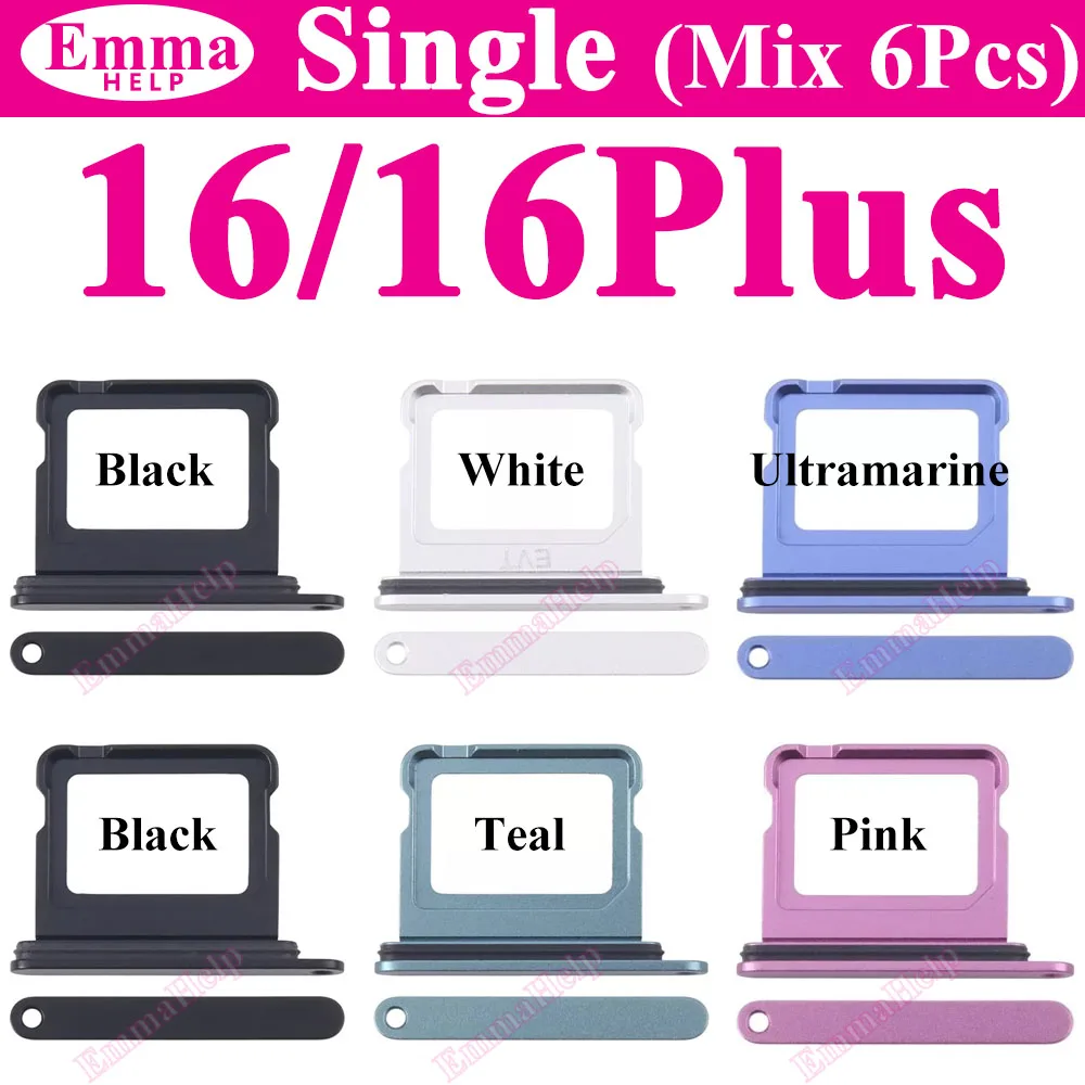 6Pcs SIM Card Tray For iPhone 16 15 13 Pro Max 12 11 14 Plus Single Card Slot drawer Holder Chip Tray Sim Card Reader Socket Mix